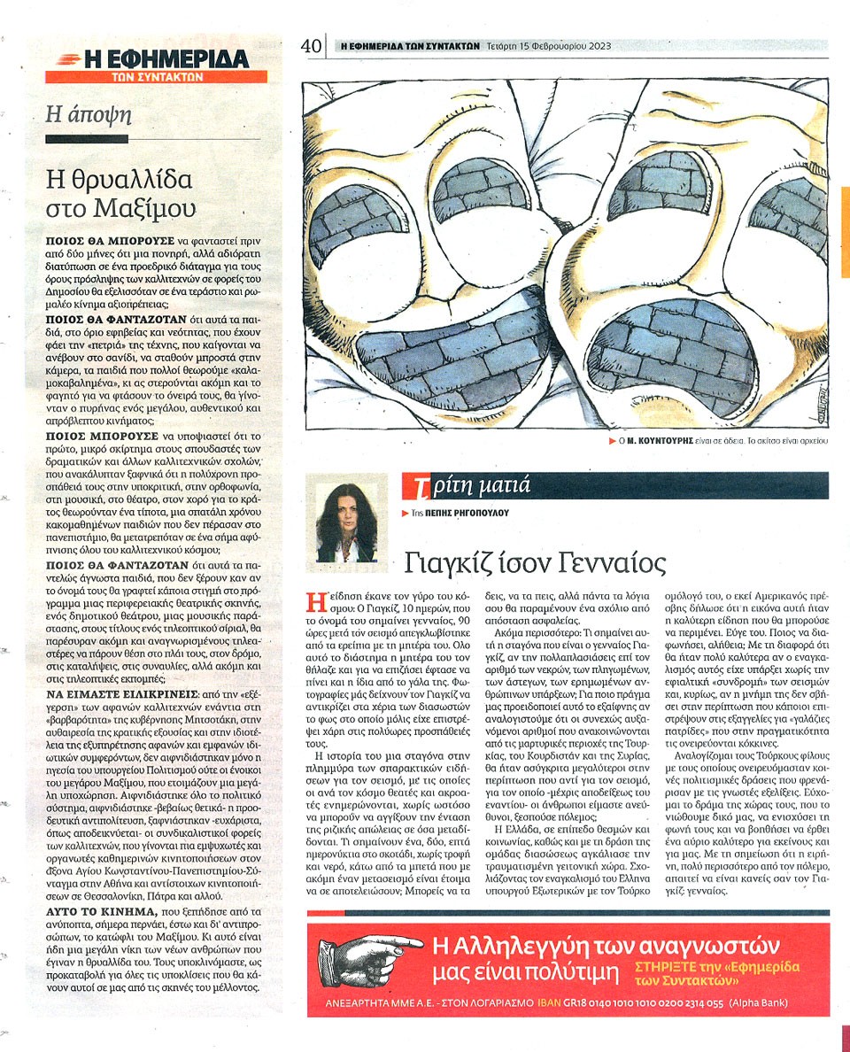 Η ΕΦΗΜΕΡΙΔΑ ΤΩΝ ΣΥΝΤΑΚΤΩΝ - 15 Φεβρουαρίου 2023