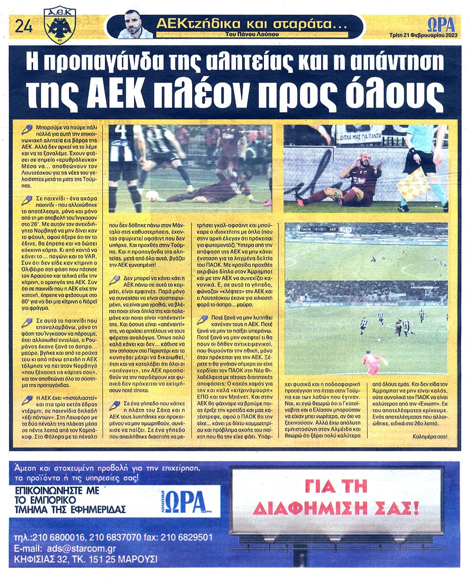 ΑΘΛΗΤΙΚΗ ΩΡΑ ΤΩΝ ΣΠΟΡ - 21 Φεβρουαρίου 2023