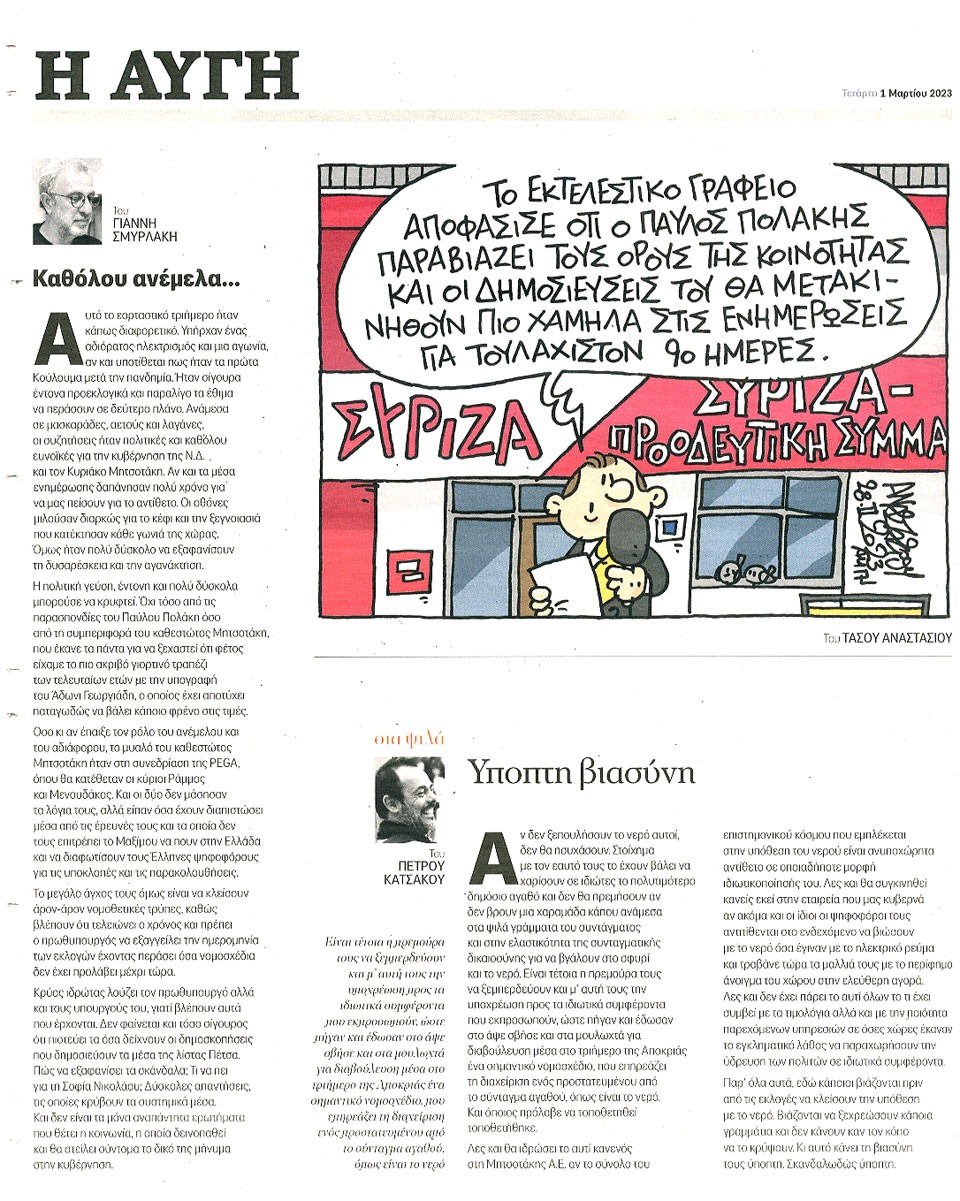 Η ΑΥΓΗ - 1 Μαρτίου 2023