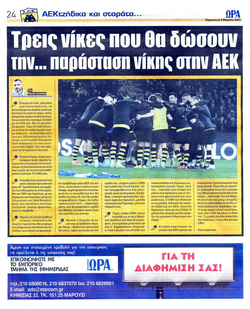 ΑΘΛΗΤΙΚΗ ΩΡΑ ΤΩΝ ΣΠΟΡ - 3 Μαρτίου 2023