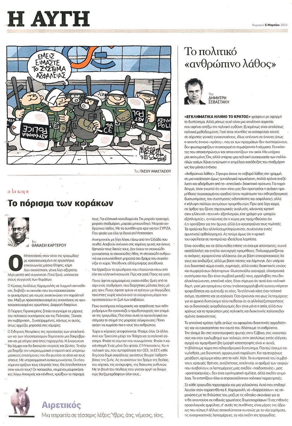 Η ΑΥΓΗ ΤΗΣ ΚΥΡΙΑΚΗΣ - 5 Μαρτίου 2023