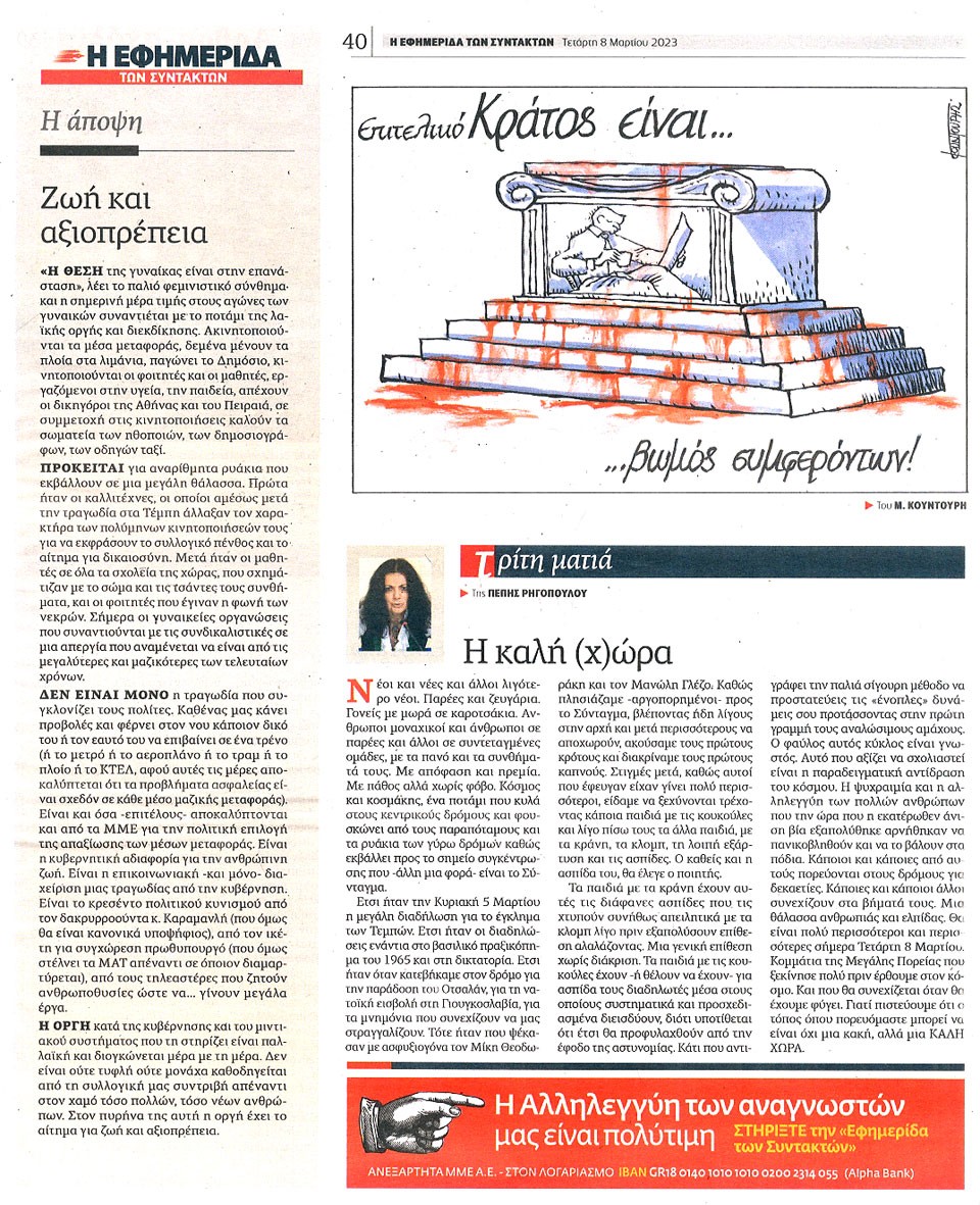 Η ΕΦΗΜΕΡΙΔΑ ΤΩΝ ΣΥΝΤΑΚΤΩΝ - 8 Μαρτίου 2023