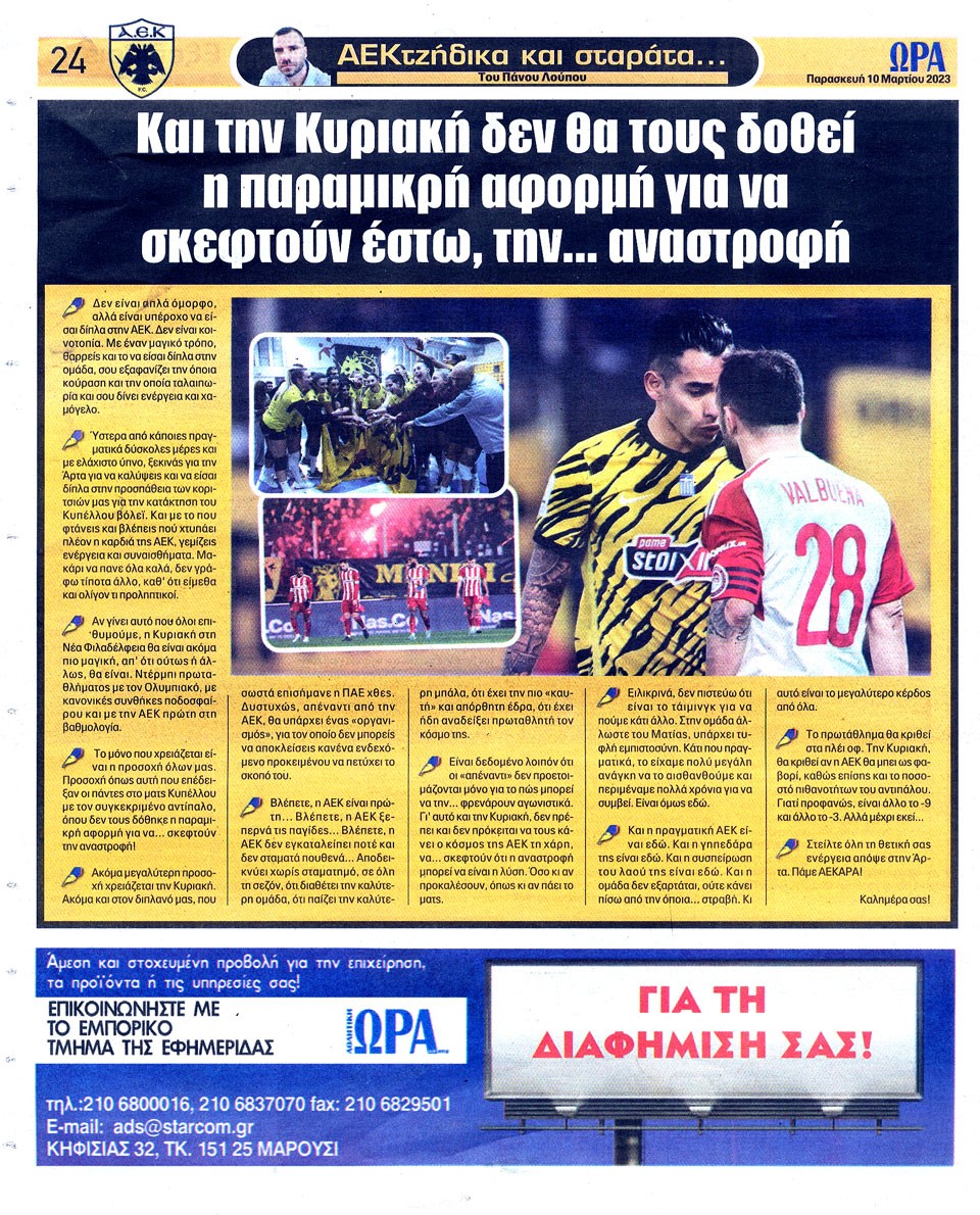 ΑΘΛΗΤΙΚΗ ΩΡΑ ΤΩΝ ΣΠΟΡ - 10 Μαρτίου 2023