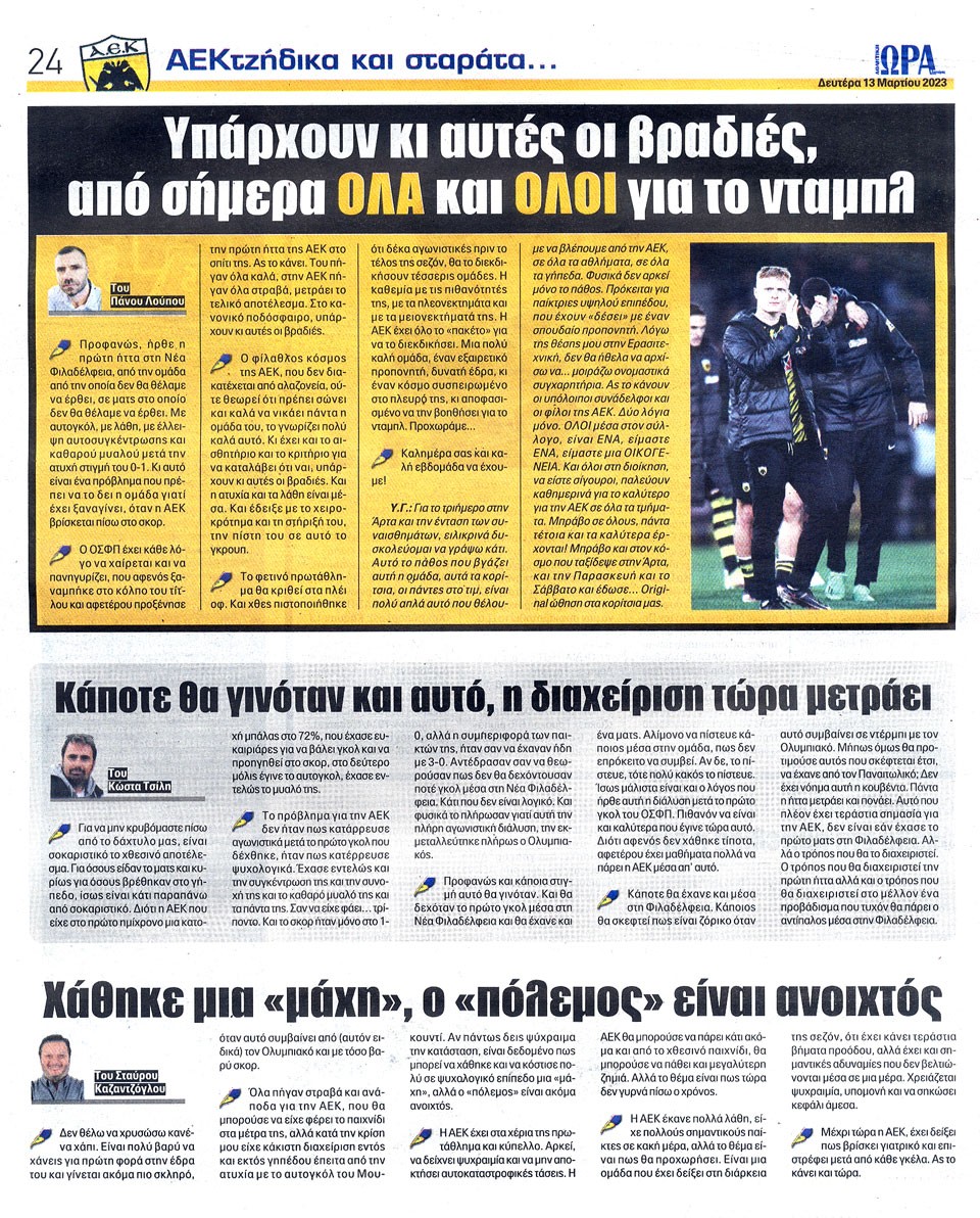 ΑΘΛΗΤΙΚΗ ΩΡΑ ΤΩΝ ΣΠΟΡ - 13 Μαρτίου 2023