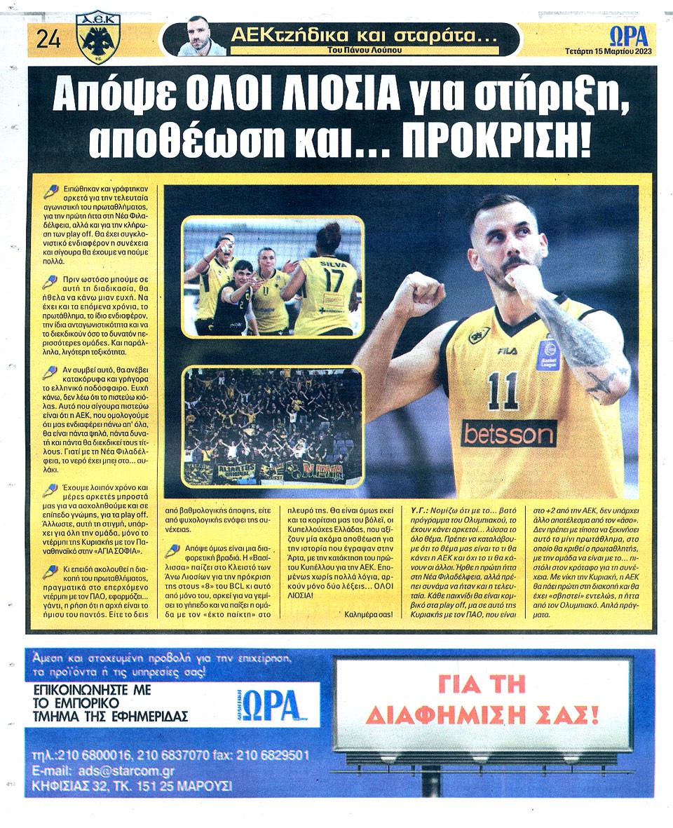 ΑΘΛΗΤΙΚΗ ΩΡΑ ΤΩΝ ΣΠΟΡ - 15 Μαρτίου 2023