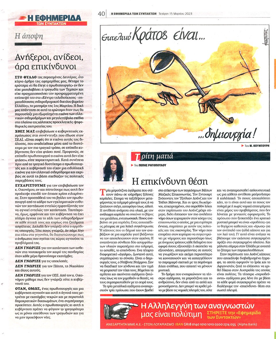 Η ΕΦΗΜΕΡΙΔΑ ΤΩΝ ΣΥΝΤΑΚΤΩΝ - 15 Μαρτίου 2023