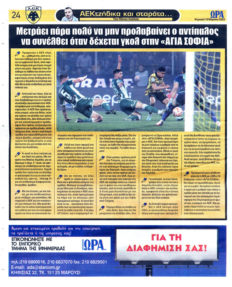 ΑΘΛΗΤΙΚΗ ΩΡΑ ΤΩΝ ΣΠΟΡ - 19 Μαρτίου 2023