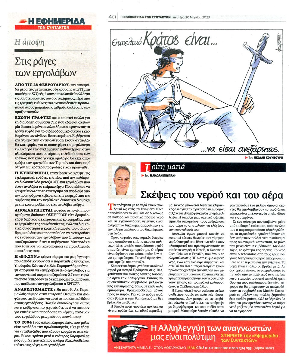 Η ΕΦΗΜΕΡΙΔΑ ΤΩΝ ΣΥΝΤΑΚΤΩΝ - 20 Μαρτίου 2023