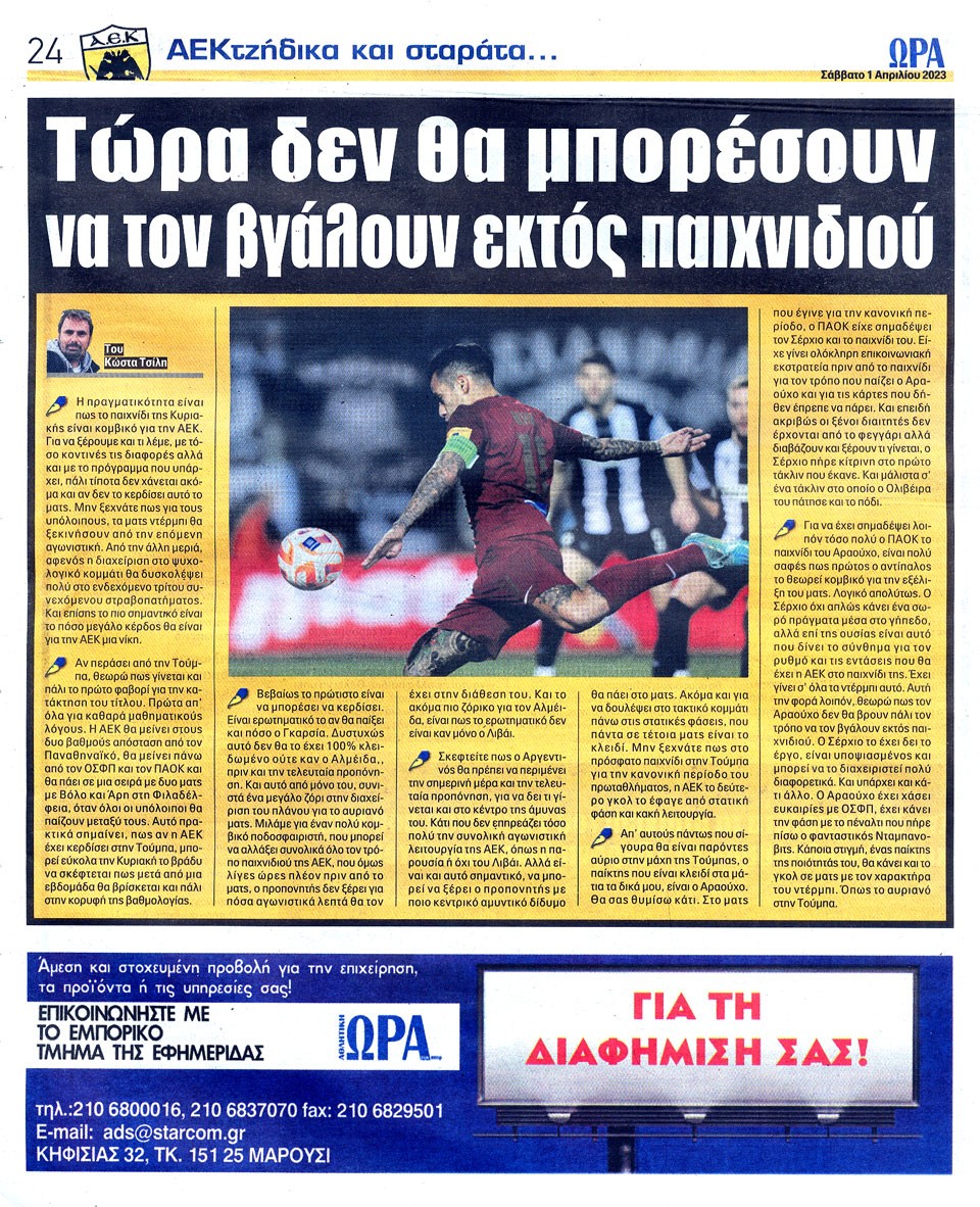 ΑΘΛΗΤΙΚΗ ΩΡΑ ΤΩΝ ΣΠΟΡ - 1 Απριλίου 2023