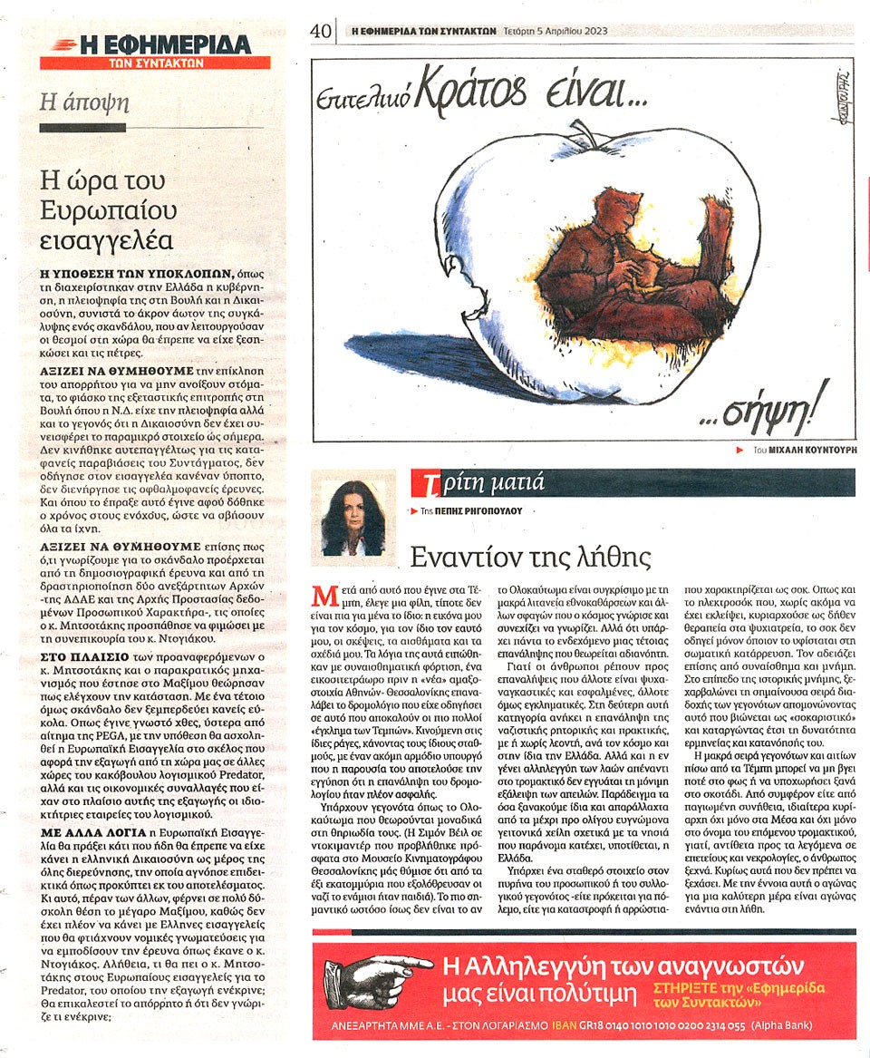 Η ΕΦΗΜΕΡΙΔΑ ΤΩΝ ΣΥΝΤΑΚΤΩΝ - 5 Απριλίου 2023