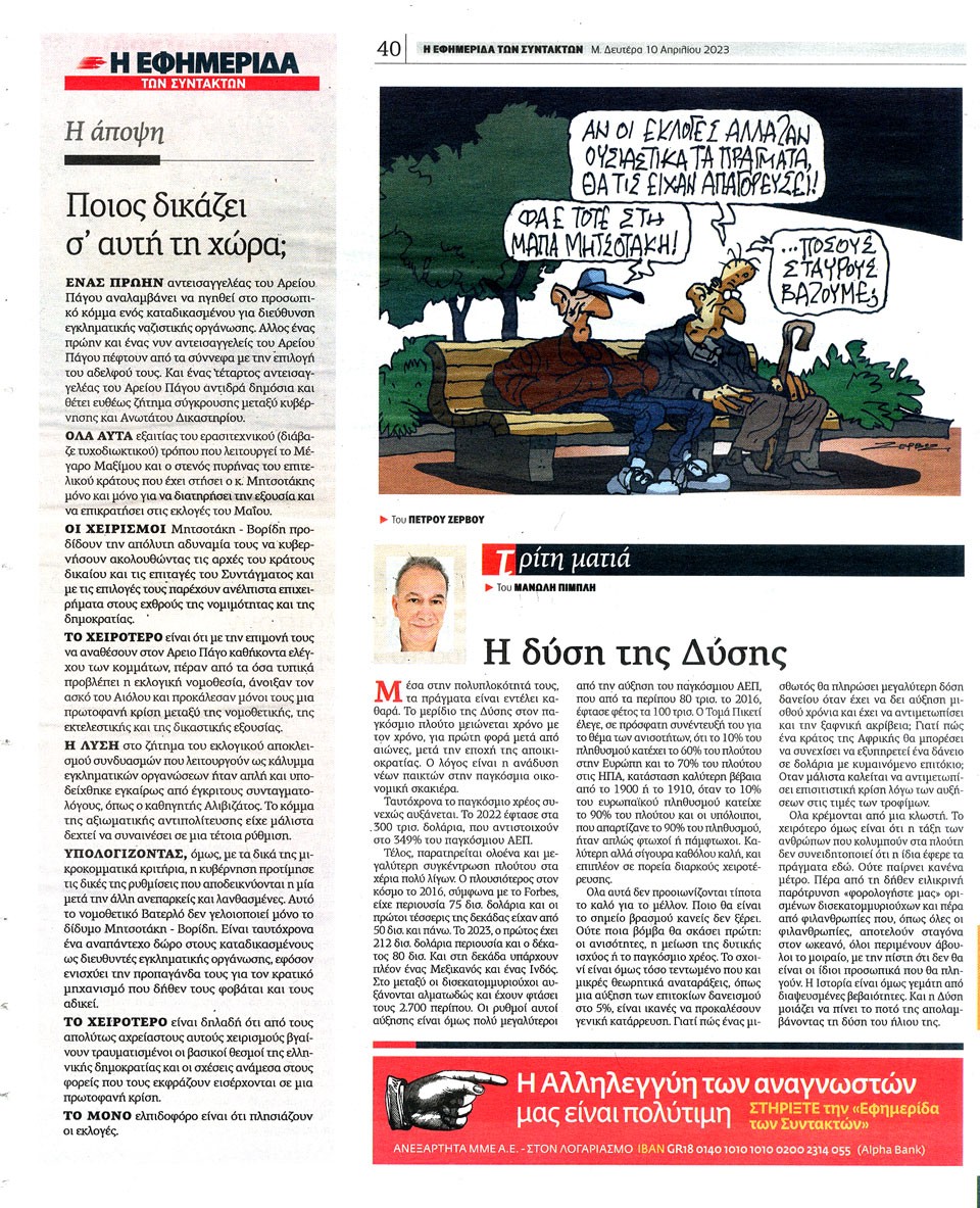 Η ΕΦΗΜΕΡΙΔΑ ΤΩΝ ΣΥΝΤΑΚΤΩΝ - 10 Απριλίου 2023