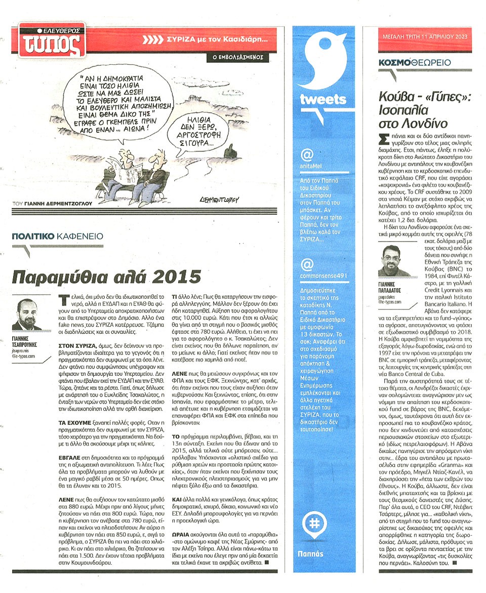 ΕΛΕΥΘΕΡΟΣ ΤΥΠΟΣ - 11 Απριλίου 2023