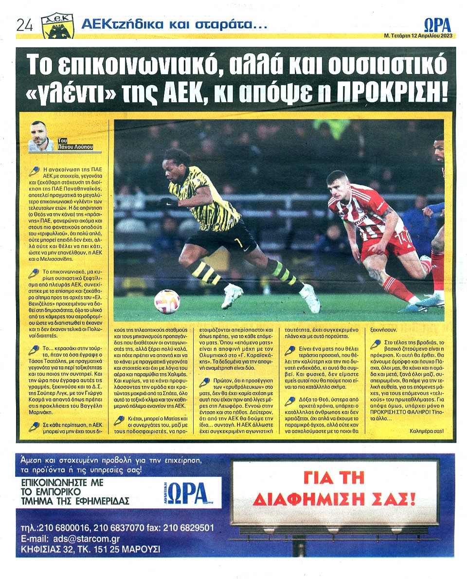 ΑΘΛΗΤΙΚΗ ΩΡΑ ΤΩΝ ΣΠΟΡ - 12 Απριλίου 2023