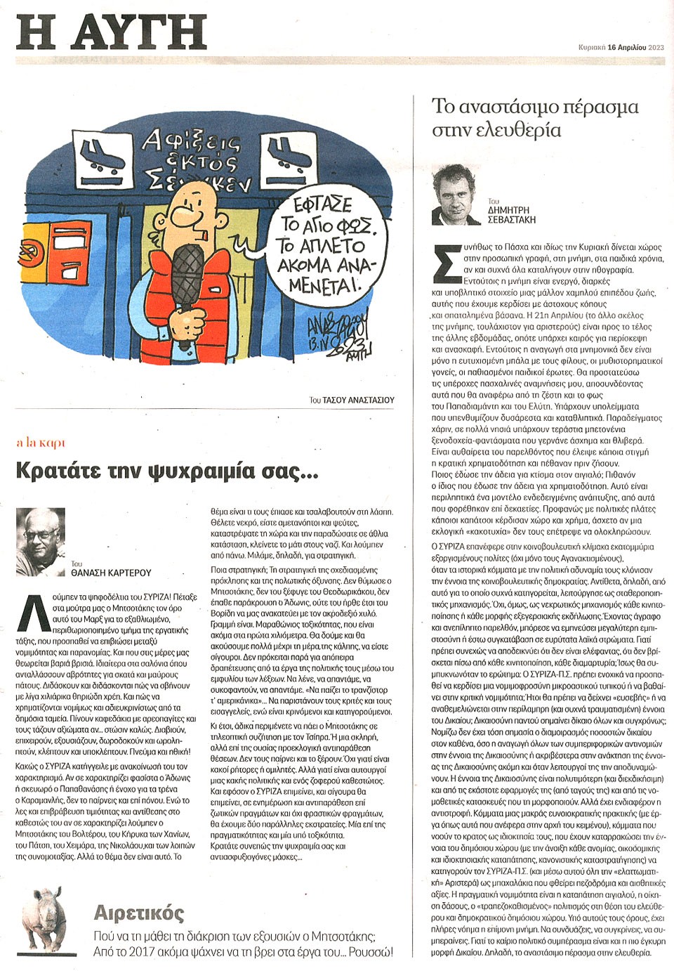 Η ΑΥΓΗ ΤΗΣ ΚΥΡΙΑΚΗΣ - 15 Απριλίου 2023