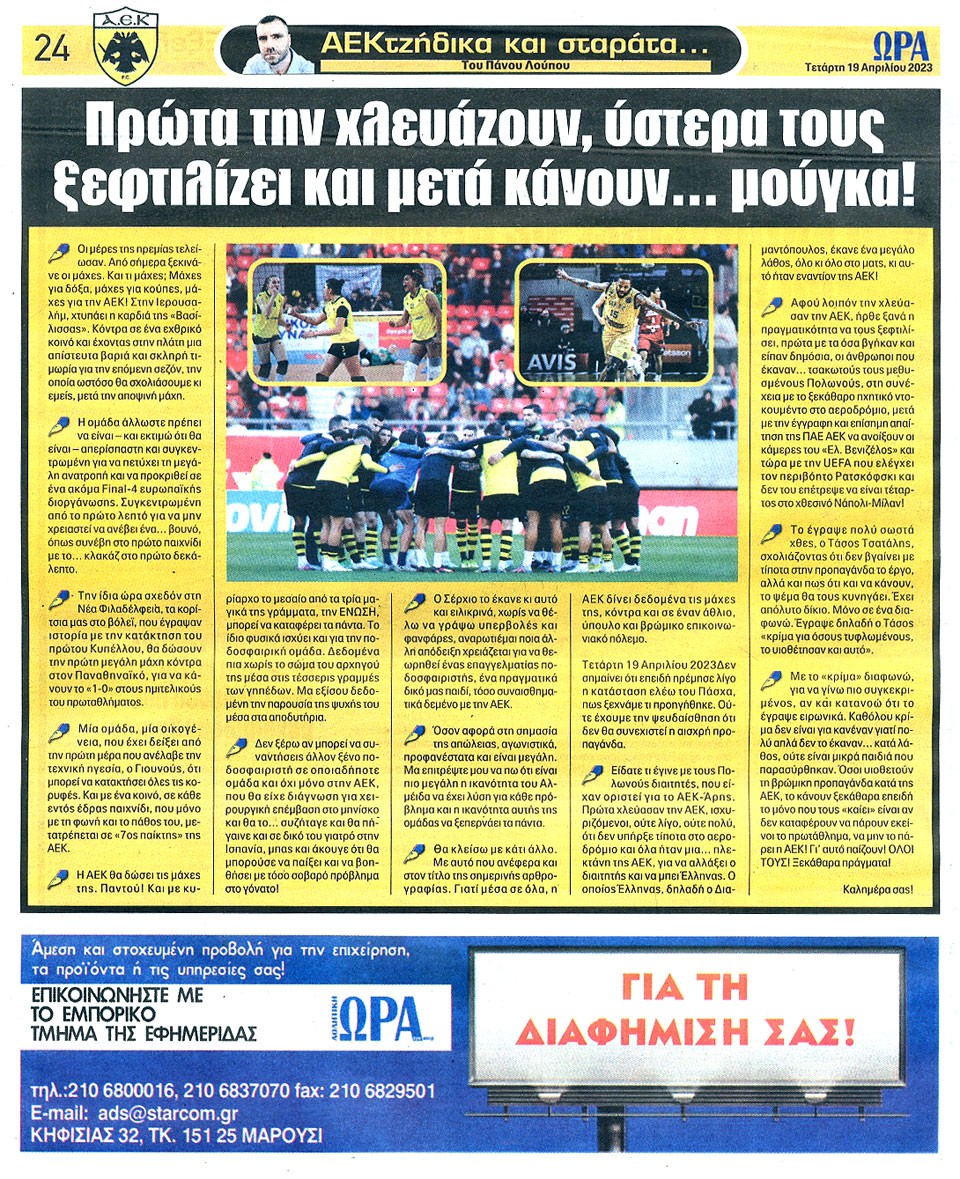 ΑΘΛΗΤΙΚΗ ΩΡΑ ΤΩΝ ΣΠΟΡ - 19 Απριλίου 2023