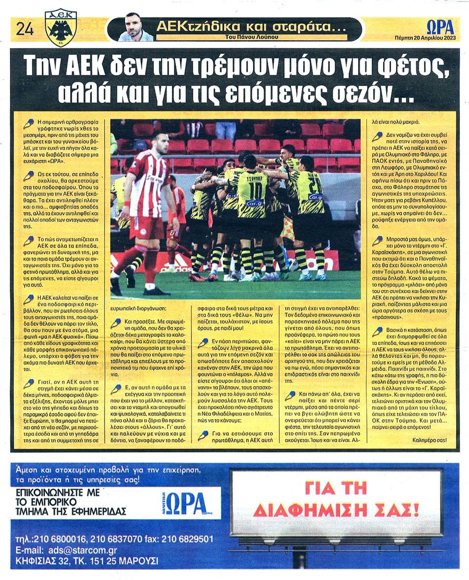 ΑΘΛΗΤΙΚΗ ΩΡΑ ΤΩΝ ΣΠΟΡ - 20 Απριλίου 2023