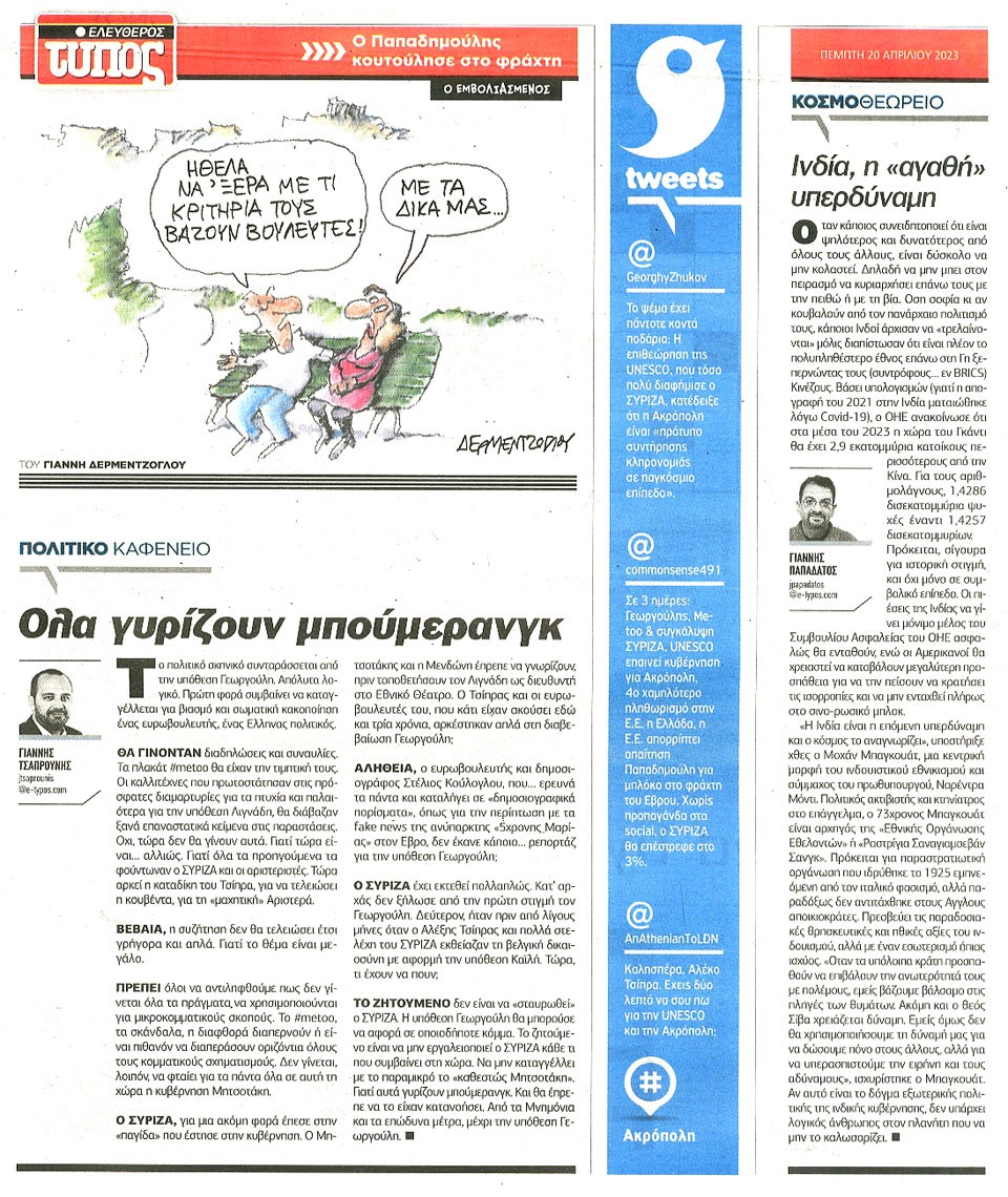 ΕΛΕΥΘΕΡΟΣ ΤΥΠΟΣ - 20 Απριλίου 2023