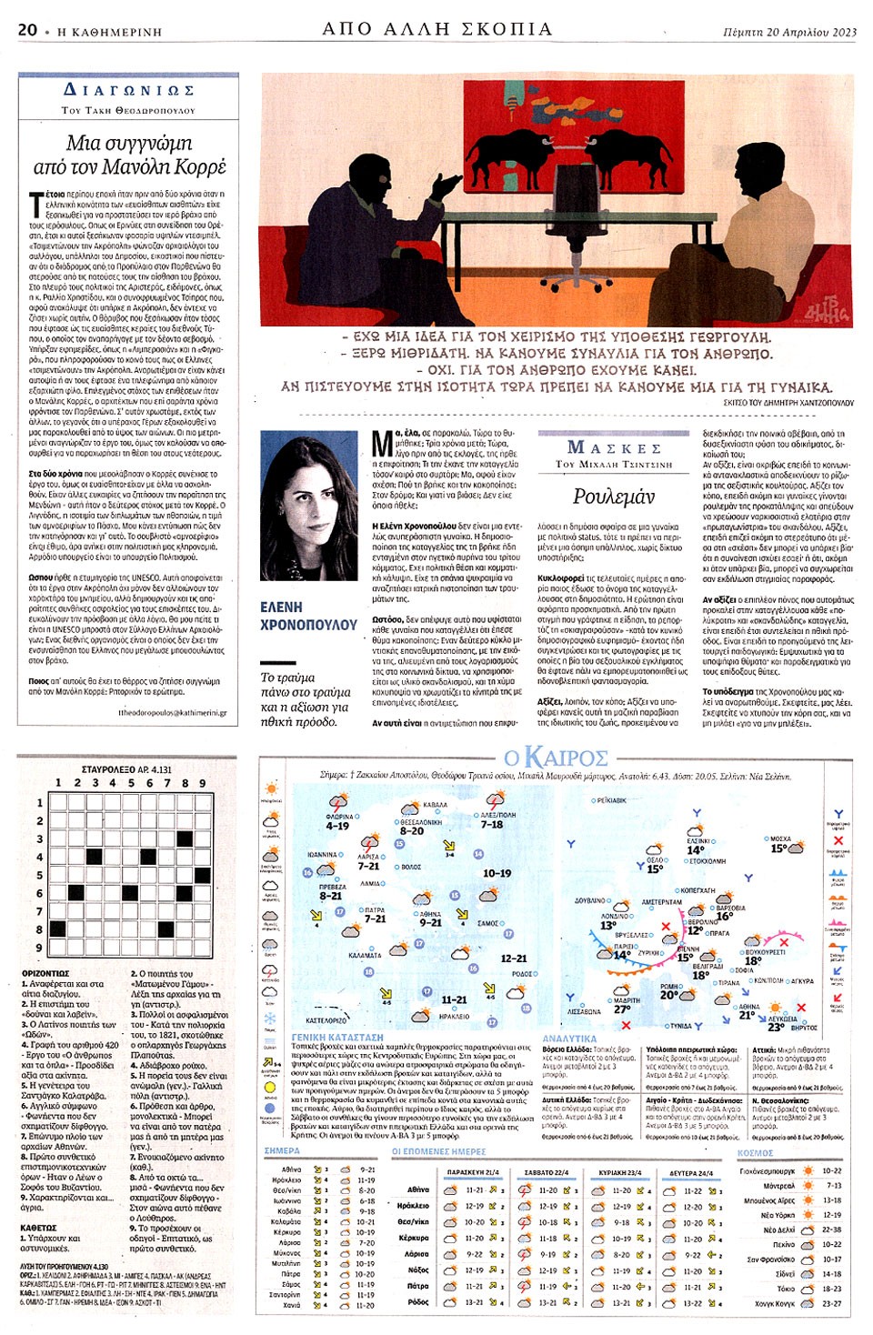ΚΑΘΗΜΕΡΙΝΗ - 20 Απριλίου 2023
