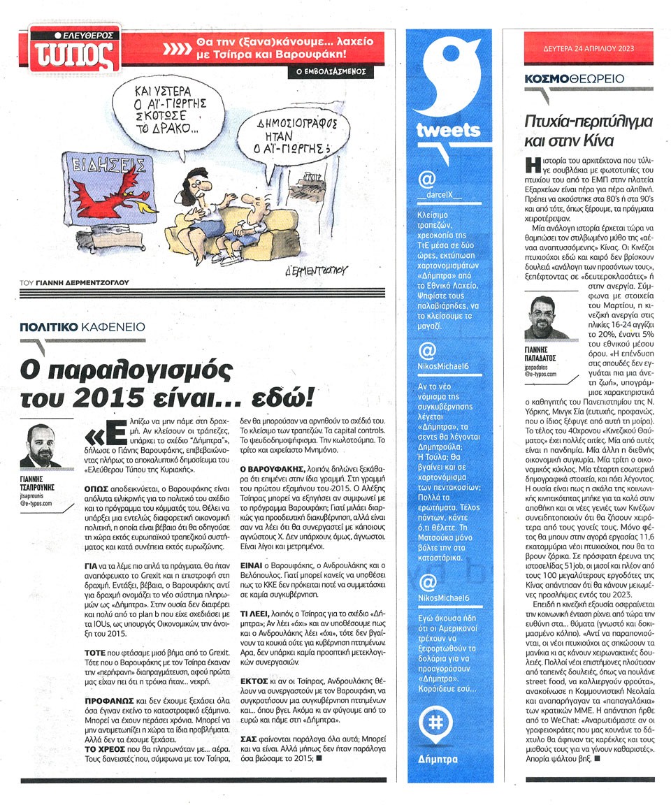 ΕΛΕΥΘΕΡΟΣ ΤΥΠΟΣ - 24 Απριλίου 2023