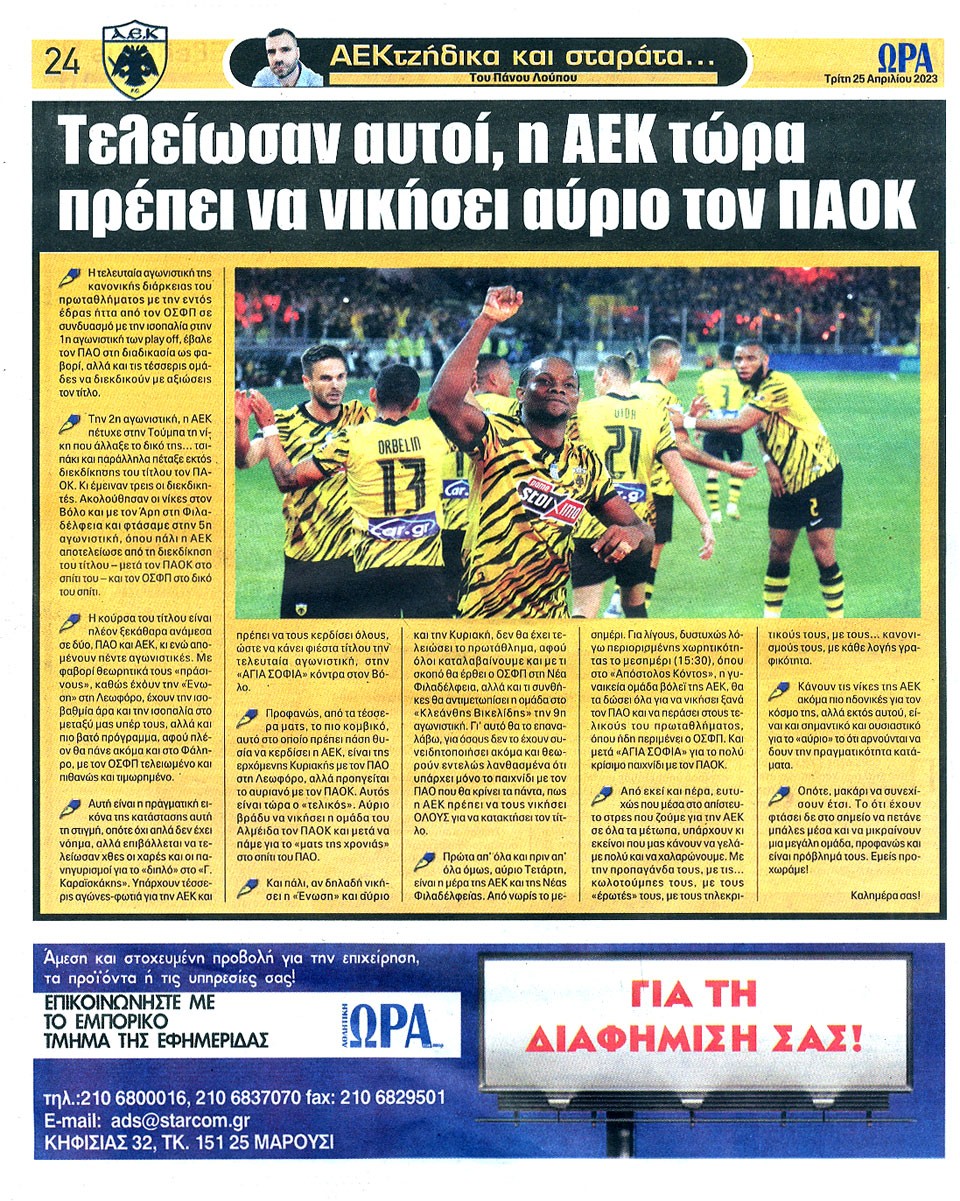 ΑΘΛΗΤΙΚΗ ΩΡΑ ΤΩΝ ΣΠΟΡ - 25 Απριλίου 2023