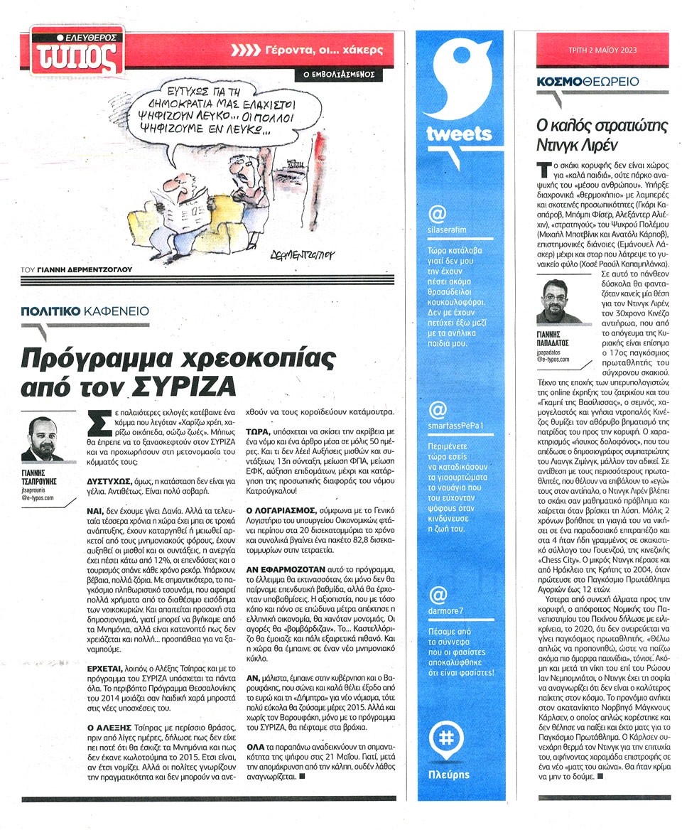 ΕΛΕΥΘΕΡΟΣ ΤΥΠΟΣ - 2 Μαΐου 2023