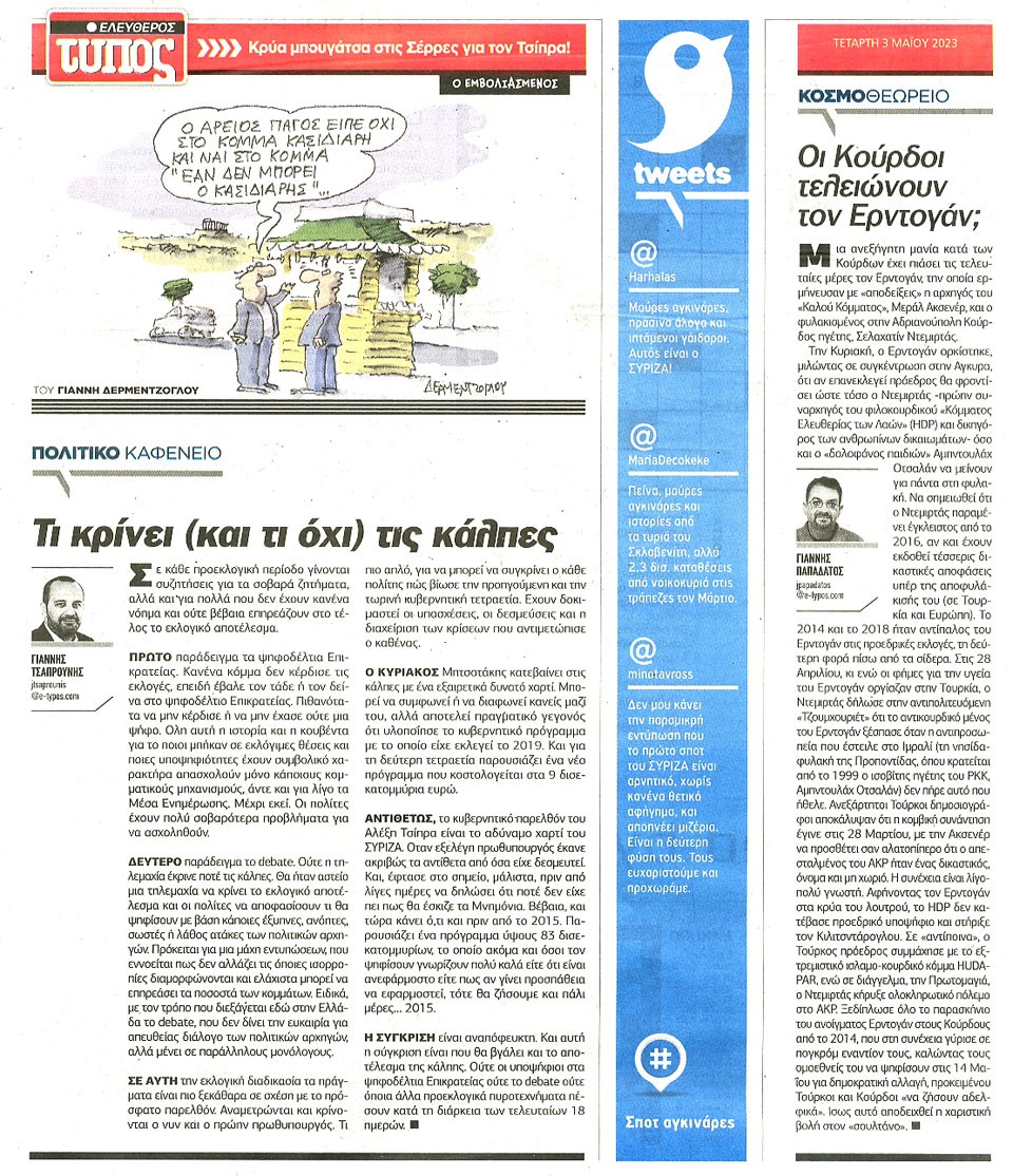 ΕΛΕΥΘΕΡΟΣ ΤΥΠΟΣ - 3 Μαΐου 2023