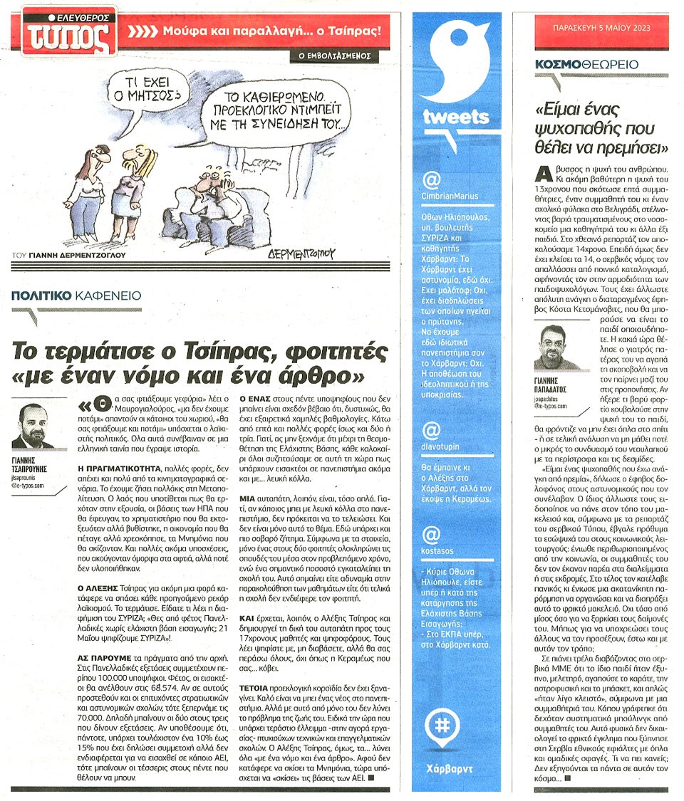 ΕΛΕΥΘΕΡΟΣ ΤΥΠΟΣ - 5 Μαΐου 2023