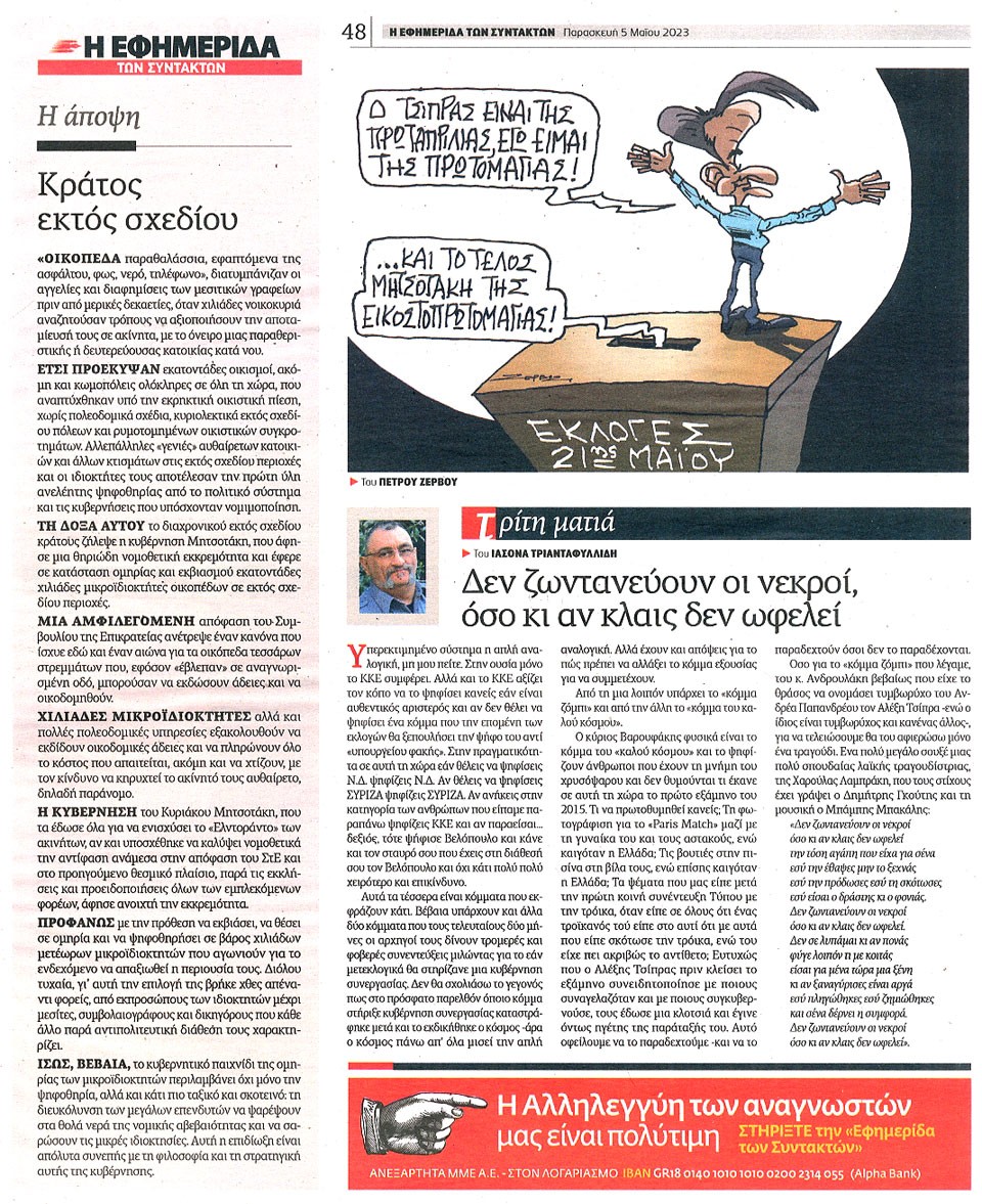 Η ΕΦΗΜΕΡΙΔΑ ΤΩΝ ΣΥΝΤΑΚΤΩΝ - 5 Μαΐου 2023
