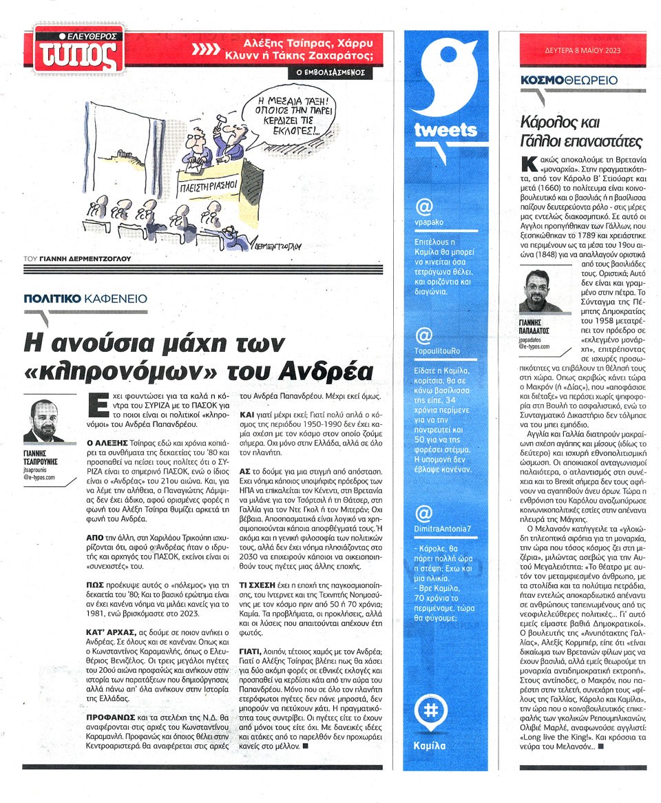 ΕΛΕΥΘΕΡΟΣ ΤΥΠΟΣ - 8 Μαΐου 2023