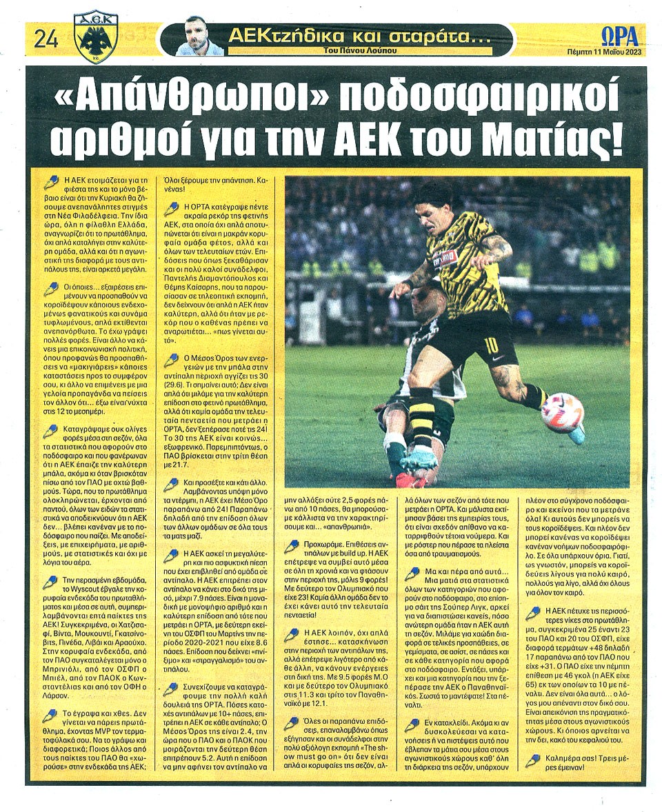 ΑΘΛΗΤΙΚΗ ΩΡΑ ΤΩΝ ΣΠΟΡ - 11 Μαΐου 2023