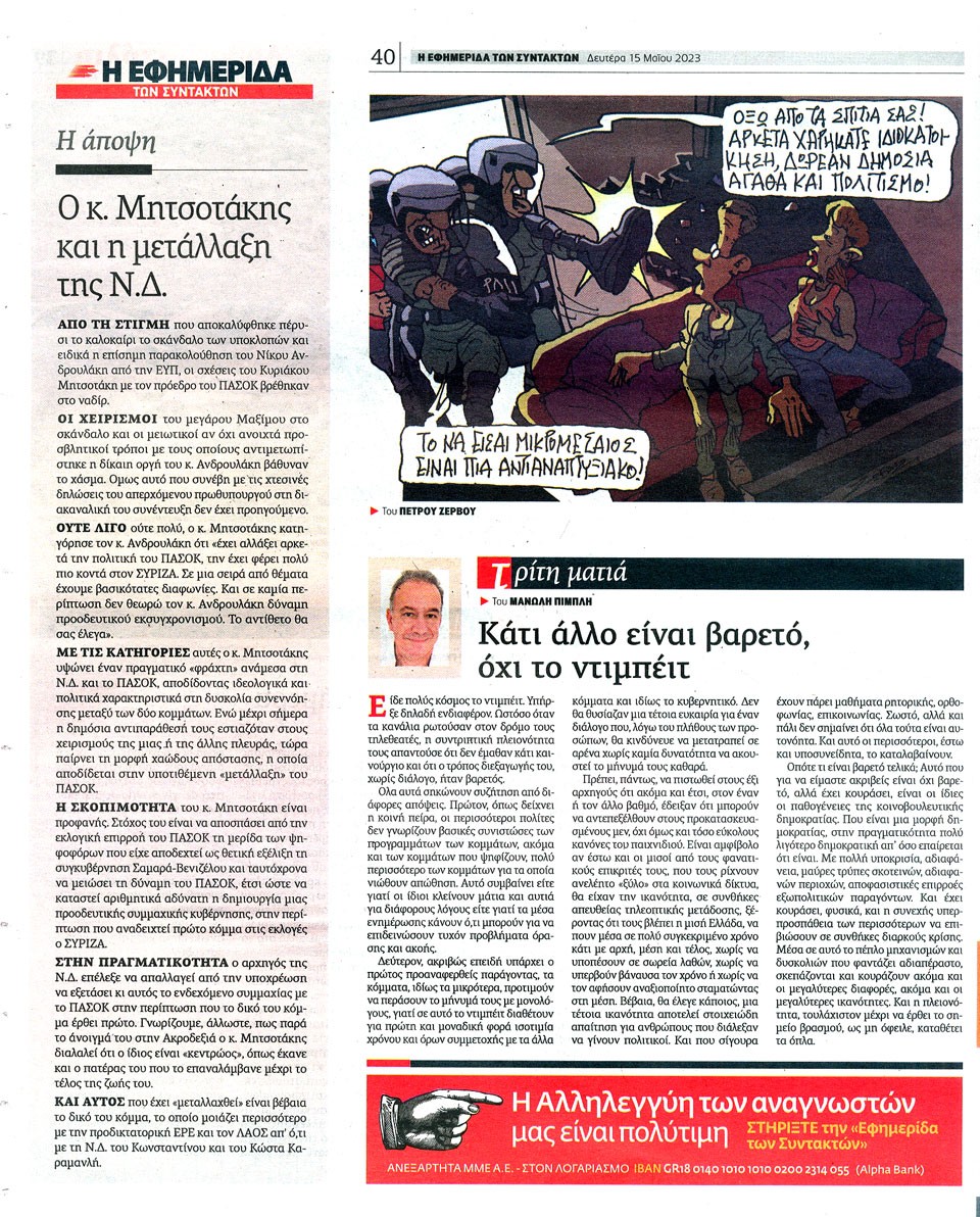 Η ΕΦΗΜΕΡΙΔΑ ΤΩΝ ΣΥΝΤΑΚΤΩΝ - 15 Μαΐου 2023