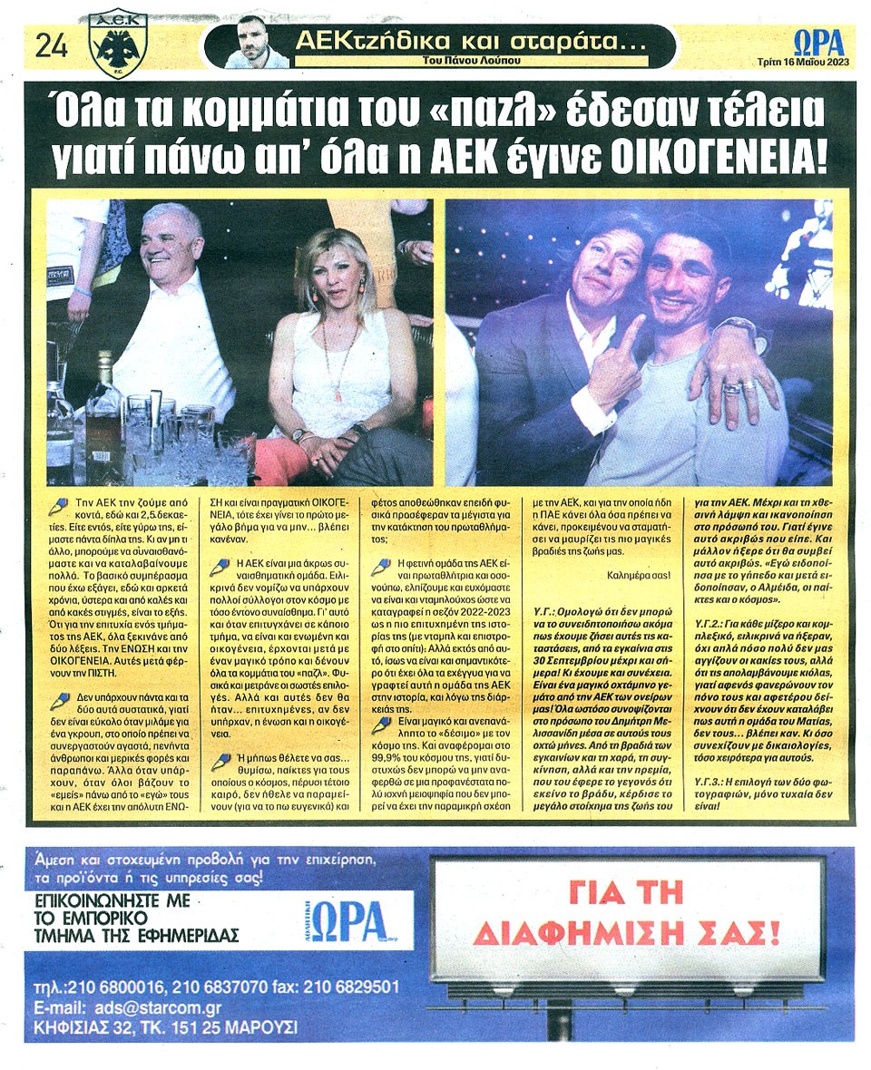 ΑΘΛΗΤΙΚΗ ΩΡΑ ΤΩΝ ΣΠΟΡ - 16 Μαΐου 2023