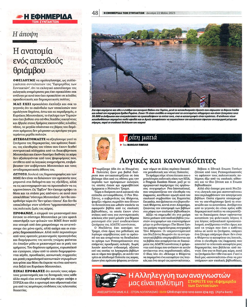 Η ΕΦΗΜΕΡΙΔΑ ΤΩΝ ΣΥΝΤΑΚΤΩΝ - 22 Μαΐου 2023