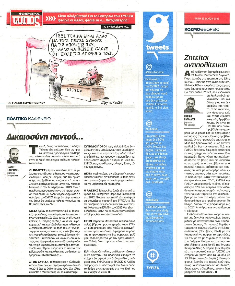 ΕΛΕΥΘΕΡΟΣ ΤΥΠΟΣ - 23 Μαΐου 2023