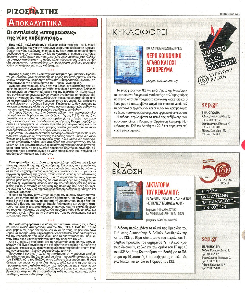 ΡΙΖΟΣΠΑΣΤΗΣ - 23 Μαΐου 2023