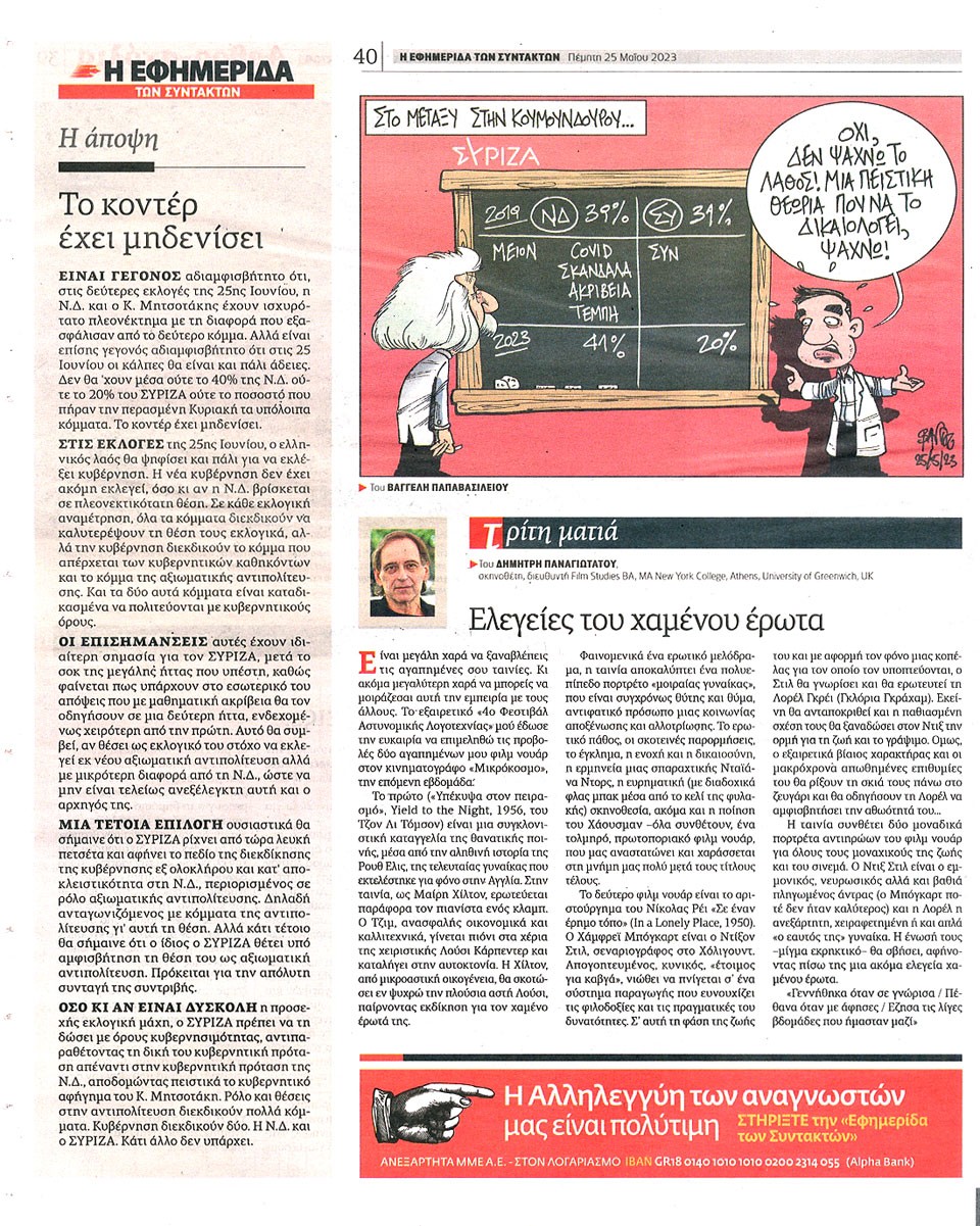 Η ΕΦΗΜΕΡΙΔΑ ΤΩΝ ΣΥΝΤΑΚΤΩΝ - 25 Μαΐου 2023