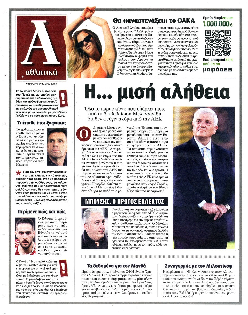 ΑΠΟΓΕΥΜΑΤΙΝΗ - 27 Μαΐου 2023