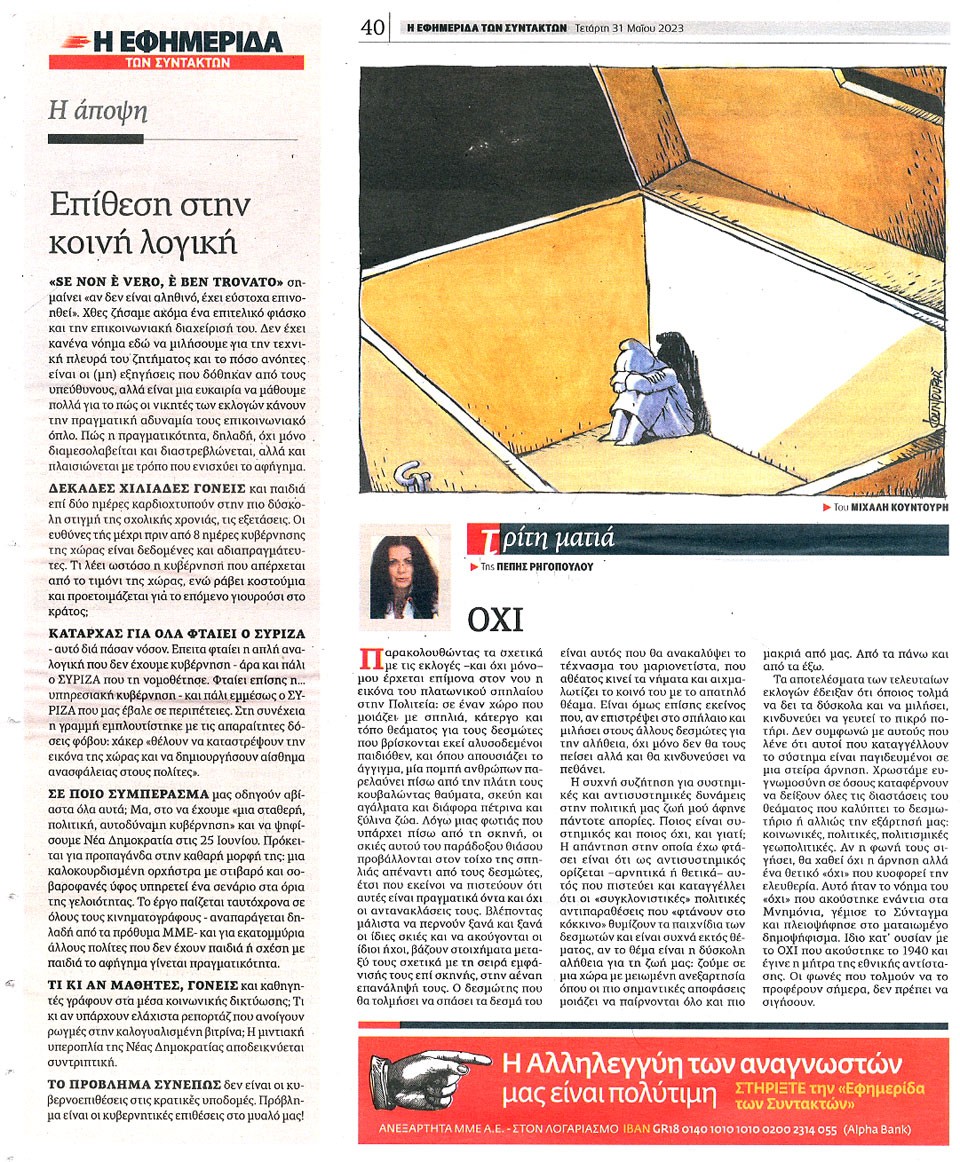 Η ΕΦΗΜΕΡΙΔΑ ΤΩΝ ΣΥΝΤΑΚΤΩΝ - 31 Μαΐου 2023