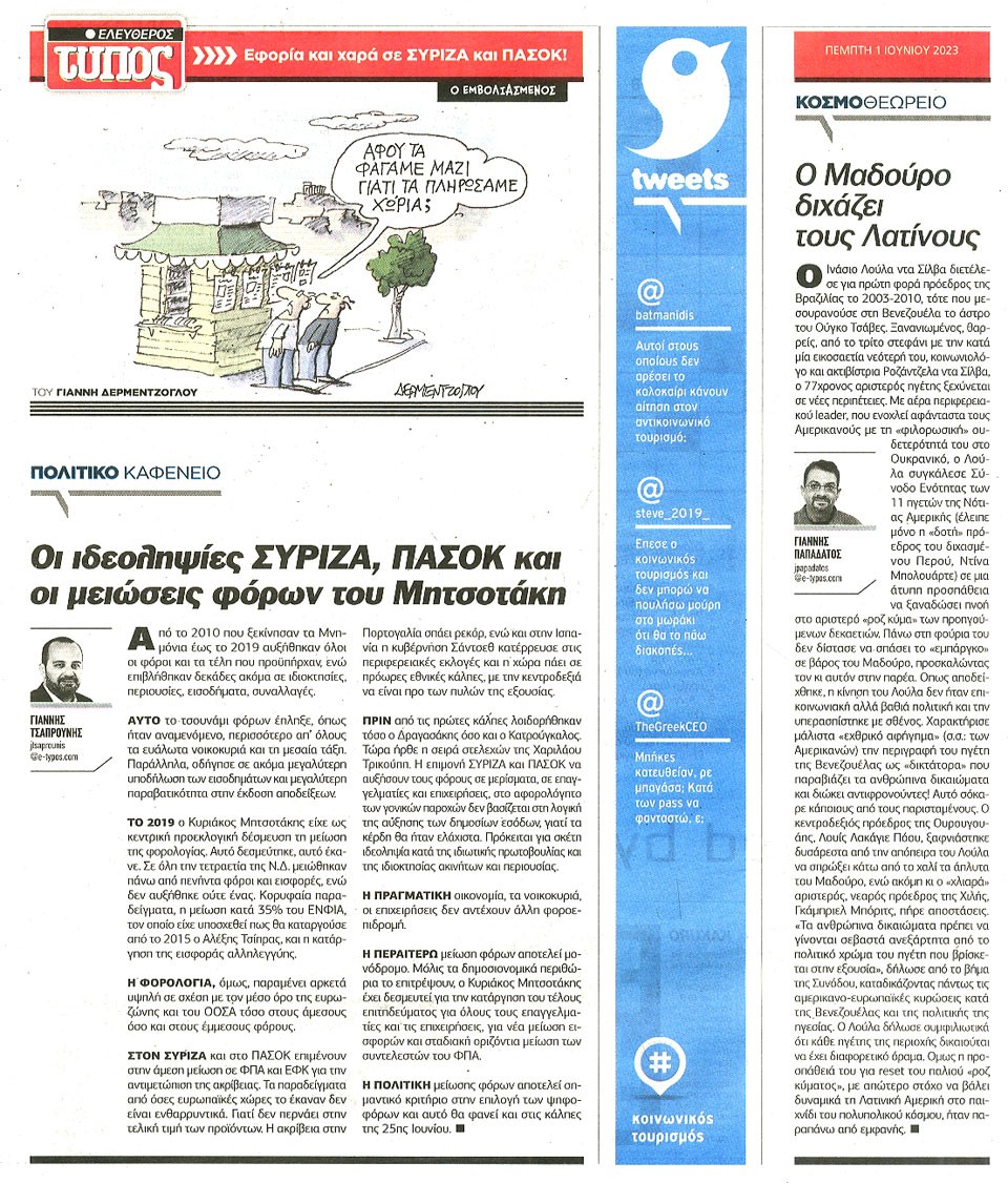 ΕΛΕΥΘΕΡΟΣ ΤΥΠΟΣ - 1 Ιουνίου 2023