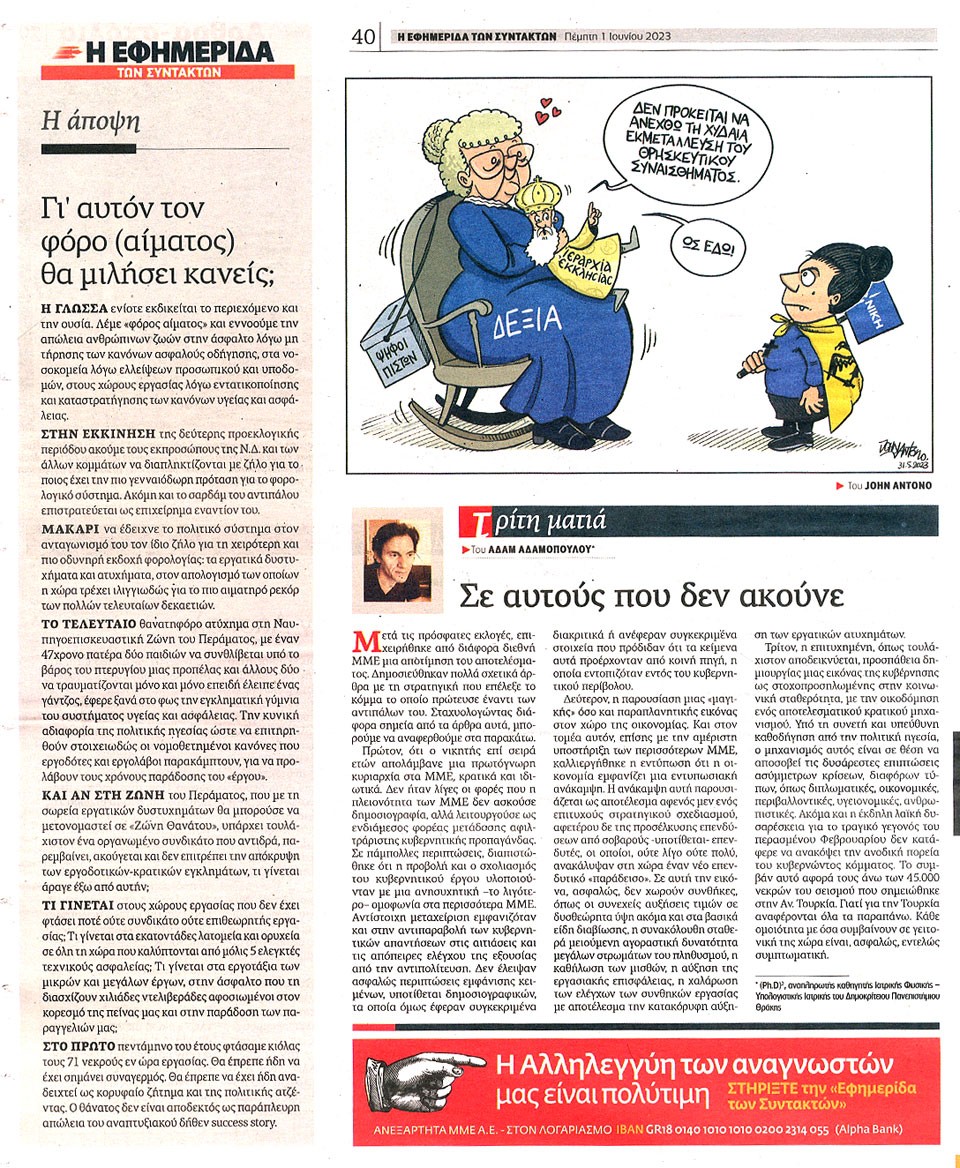Η ΕΦΗΜΕΡΙΔΑ ΤΩΝ ΣΥΝΤΑΚΤΩΝ - 1 Ιουνίου 2023