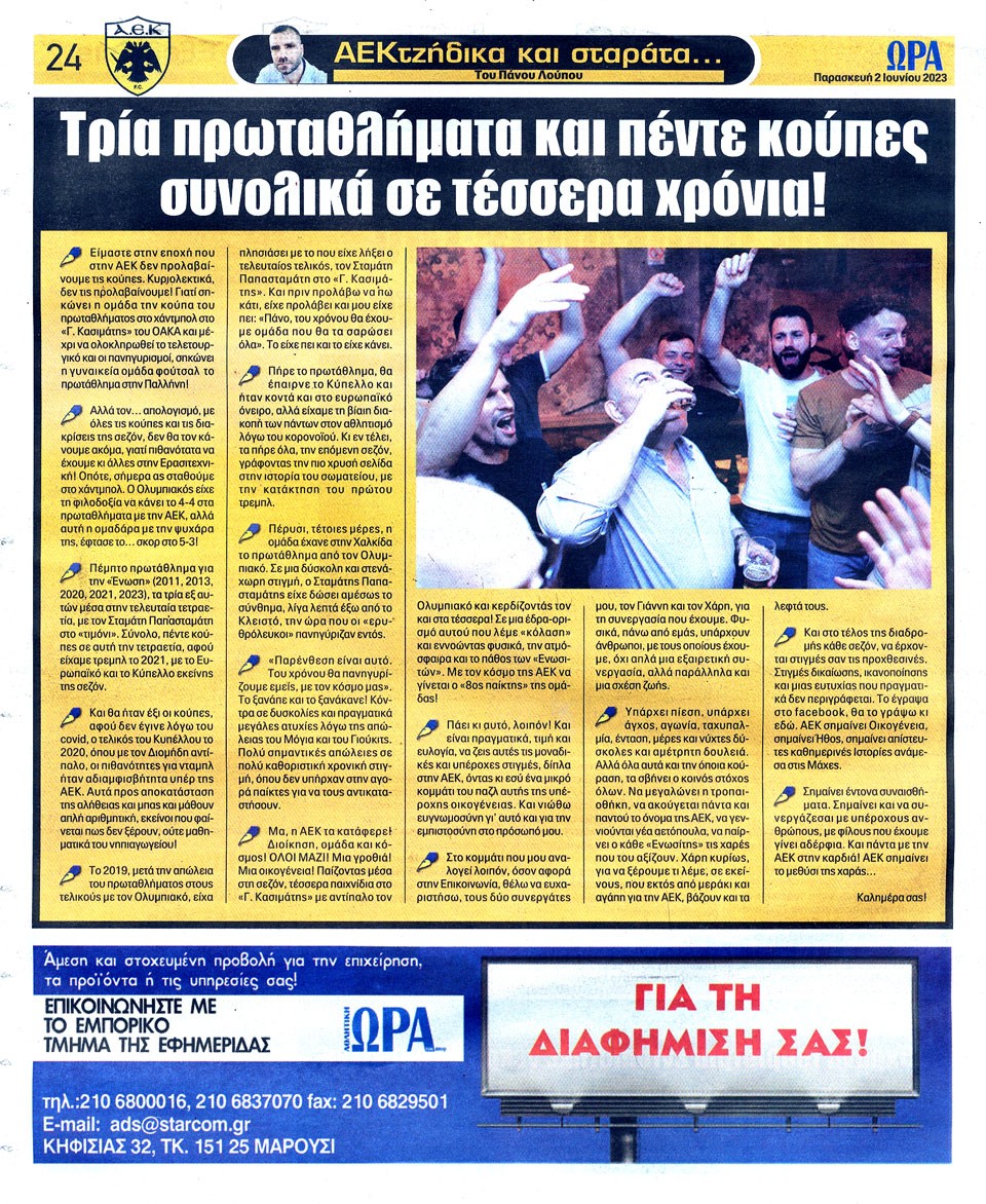 ΑΘΛΗΤΙΚΗ ΩΡΑ ΤΩΝ ΣΠΟΡ - 2 Ιουνίου 2023