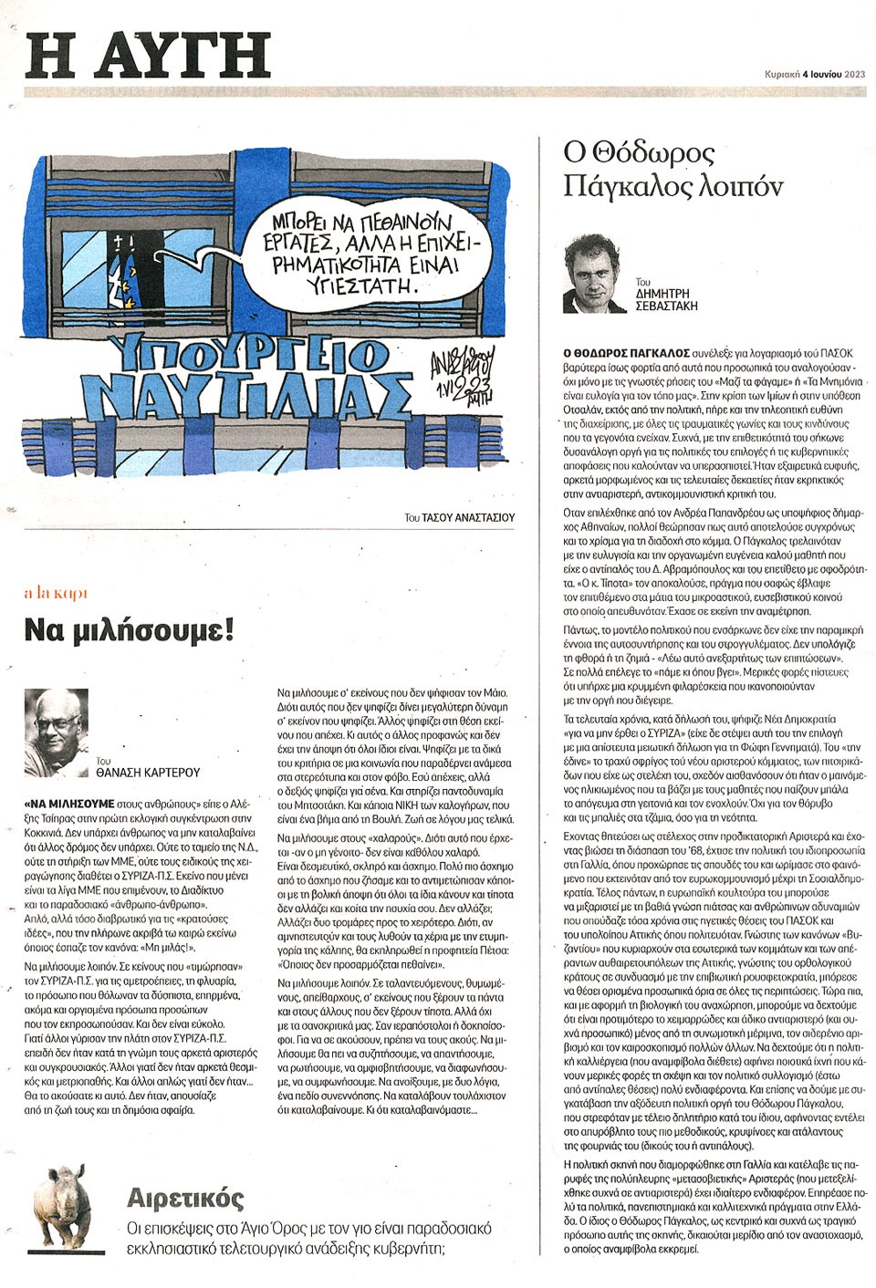 Η ΑΥΓΗ ΤΗΣ ΚΥΡΙΑΚΗΣ - 3 Ιουνίου 2023