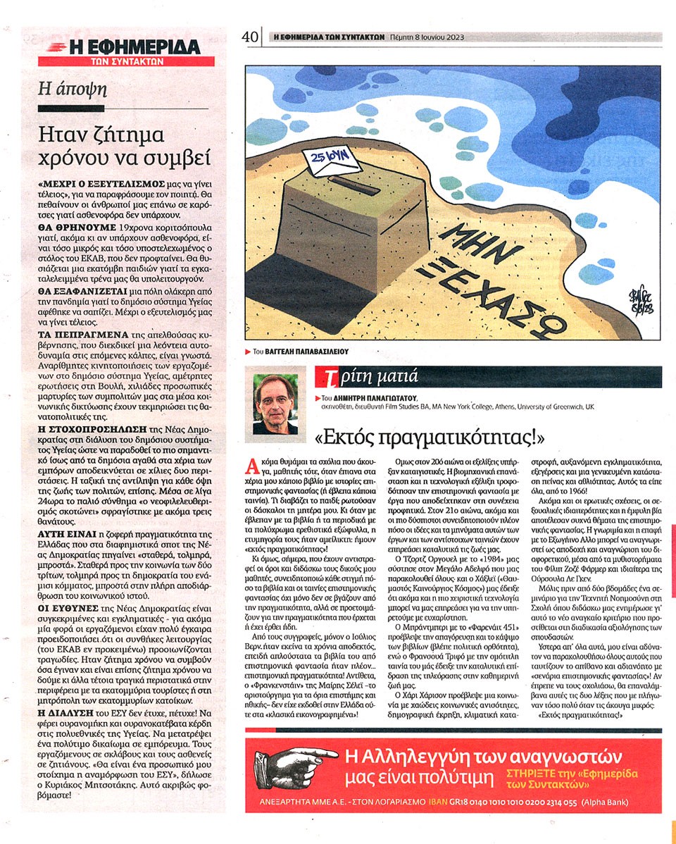 Η ΕΦΗΜΕΡΙΔΑ ΤΩΝ ΣΥΝΤΑΚΤΩΝ - 8 Ιουνίου 2023