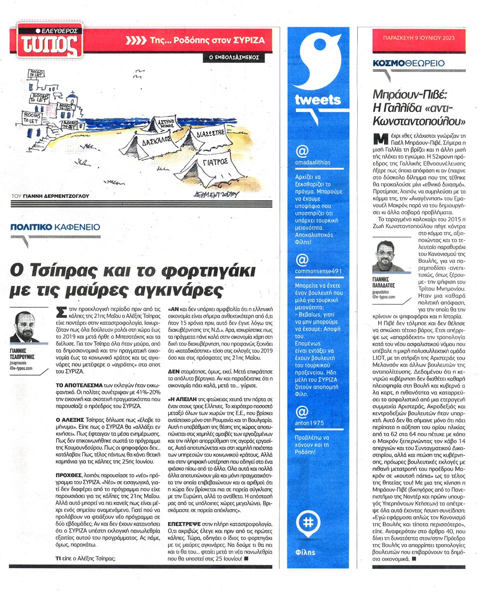 ΕΛΕΥΘΕΡΟΣ ΤΥΠΟΣ - 9 Ιουνίου 2023