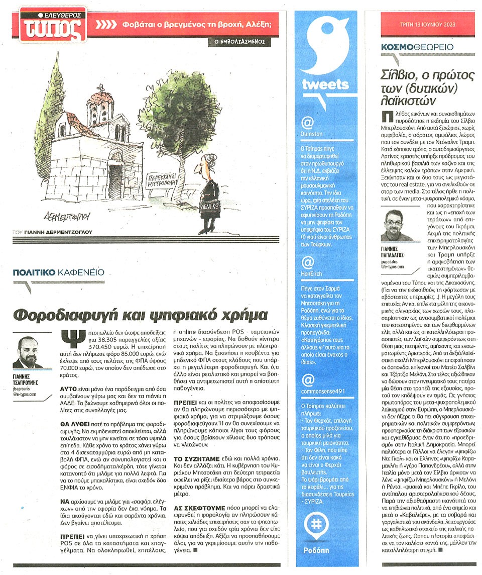 ΕΛΕΥΘΕΡΟΣ ΤΥΠΟΣ - 13 Ιουνίου 2023