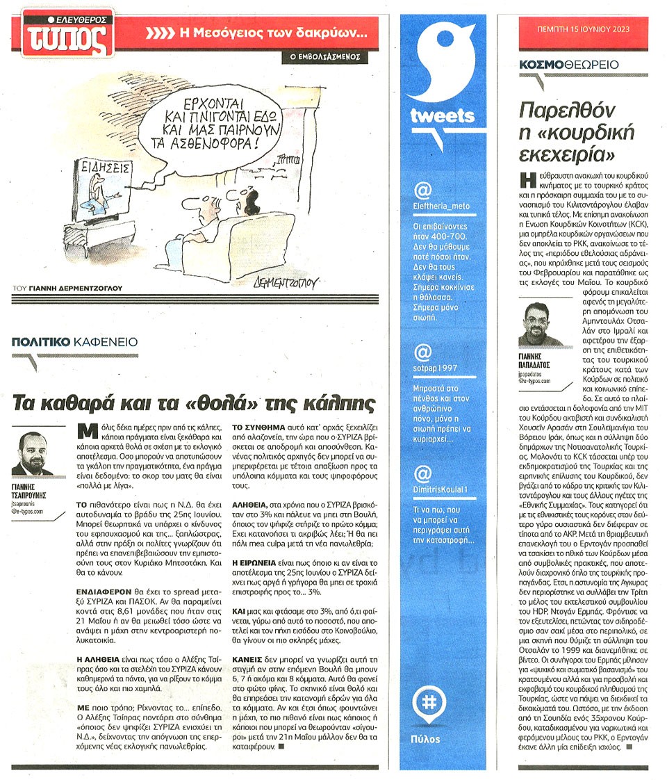 ΕΛΕΥΘΕΡΟΣ ΤΥΠΟΣ - 15 Ιουνίου 2023