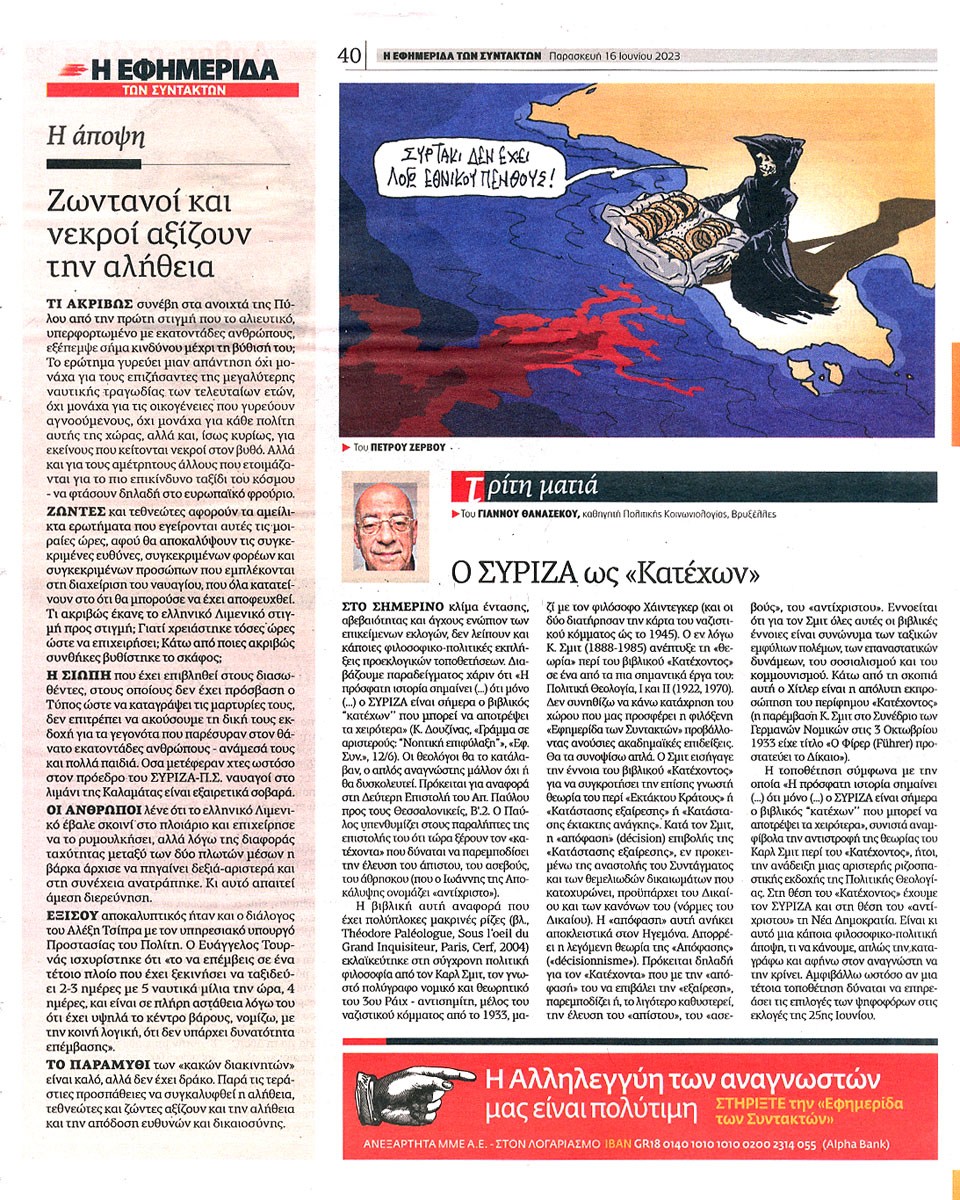 Η ΕΦΗΜΕΡΙΔΑ ΤΩΝ ΣΥΝΤΑΚΤΩΝ - 16 Ιουνίου 2023