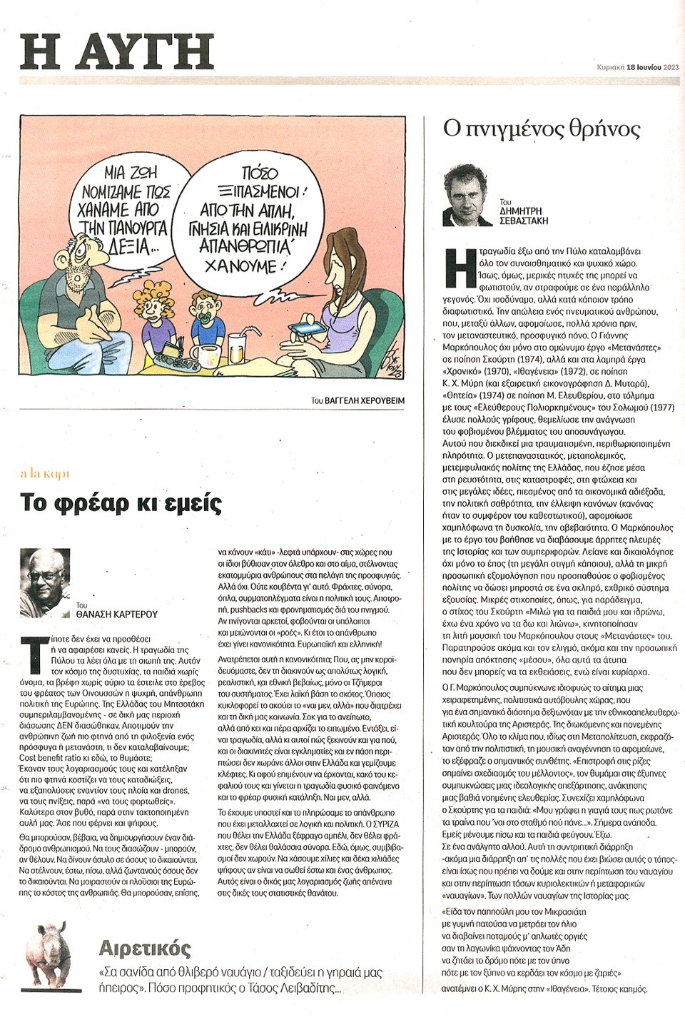 Η ΑΥΓΗ ΤΗΣ ΚΥΡΙΑΚΗΣ - 18 Ιουνίου 2023