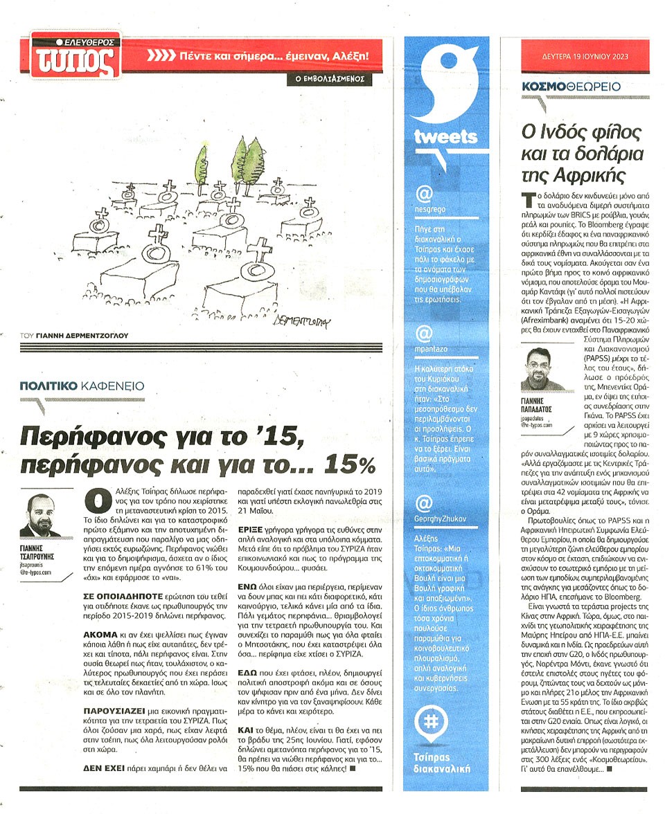 ΕΛΕΥΘΕΡΟΣ ΤΥΠΟΣ - 19 Ιουνίου 2023