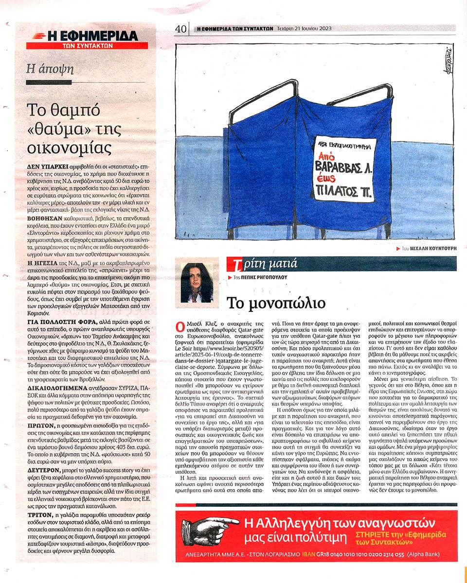 Η ΕΦΗΜΕΡΙΔΑ ΤΩΝ ΣΥΝΤΑΚΤΩΝ - 21 Ιουνίου 2023